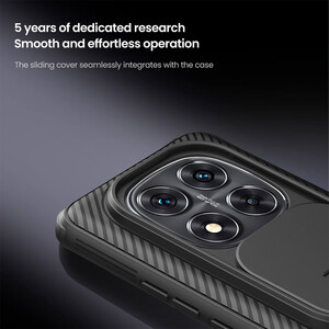کاور محافظ کم شیلد پرو شیائومی ردمی نوت 14 پرو پلاس برند نیلکین قادر است تا به خوبی از لنز گوشی محافظت کند. در قسمت پشتی این قاب اسلاید کشویی برای محافظت از دوربین به کار رفته است. در صورت نیاز میتوانید این درپوش را باز کنید و هنگام اتمام کار با دوربین گوشی آن را ببندید. این اسلاید کشویی قادر است تا امنیت حریم خصوصی کاربر را نیز افزایش دهد.