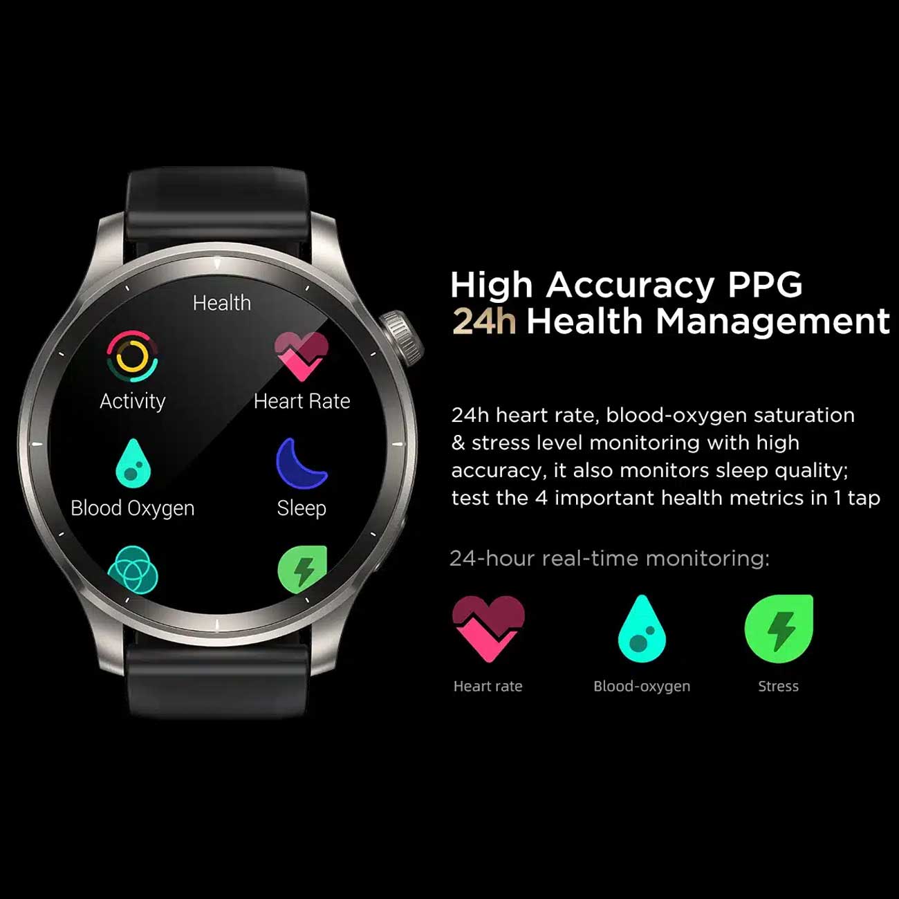 - اندازهگیری سطح اکسیژن خون: سطح اکسیژن خون هم دلیلی برای سلامت بدن است و این ساعت سلامتی به خوبی با کنترل میزان Sp02 و PPG خون، سلامت بدنتان را کنترل میکند.