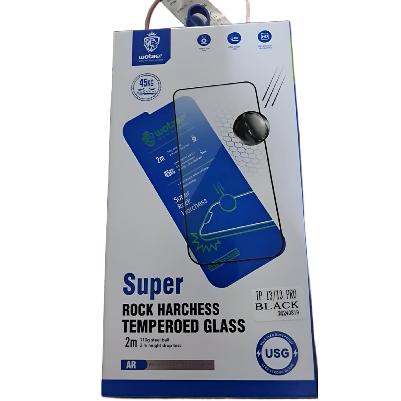 گلس محافظ آیفون 13 و آیفون 13 پرو مدل Wotaer Super ROCK HARCHESS TEMPEROED GLASS با استفاده از شیشه حرارت دیده مقاوم و مواد باکیفیت دوستدار محیط زیست پلیکربنات (PC) تولید شده است. این محصول به واسطه دستگاههای پیشرفته تزریق و فناوری آبکاری شده (UV) مات و بدون گرد و غبار طراحی و ساخته میشود. ویژگیهای مذکور نه تنها جذابیت ظاهری محصول را افزایش میدهد، بلکه تجربه کاربری راحت و مطلوبی را برای شما به ارمغان میآورد.