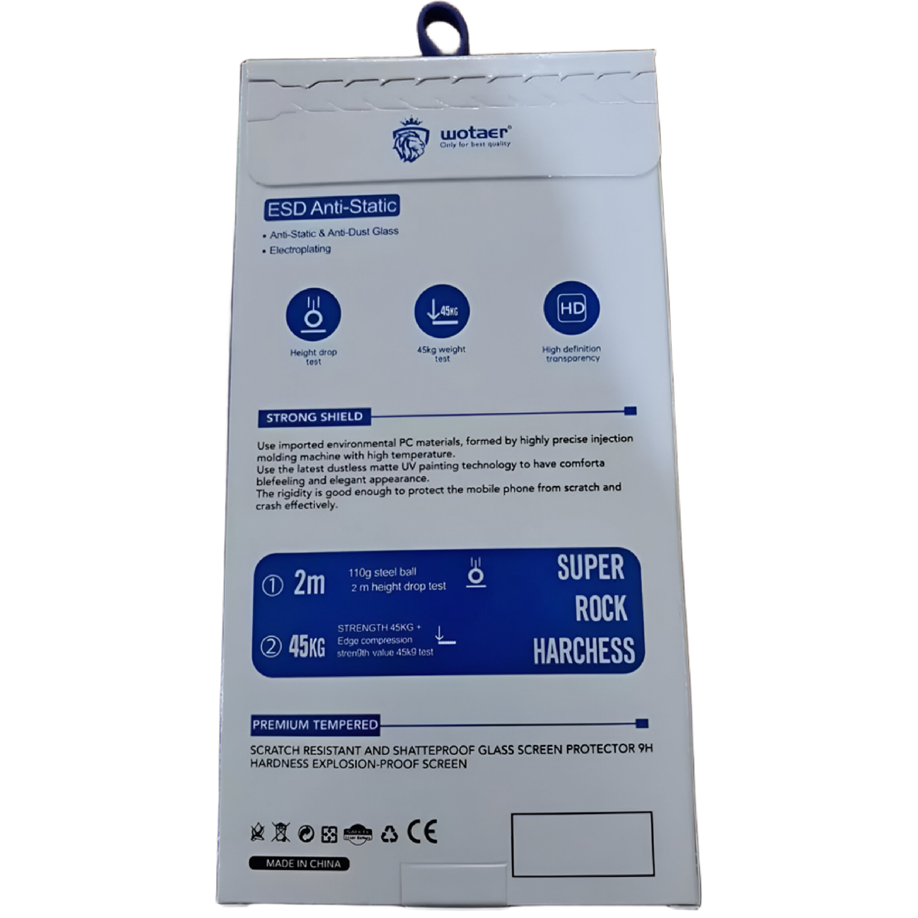 یکی از ویژگیهای برجسته گلس Wotaer برای آیفون 13/13 پرو، سختی بالا و مقاومت آن در برابر خراش و ضربه است. این محافظ صفحه نمایش برای حفاظت از صفحه نمایش گوشی شما در برابر آسیبهای احتمالی طراحی شده است؛ بهطوریکه در آزمایشات انجام شده، توانسته به خوبی از صفحه نمایش در برابر برخورد اجسام از ارتفاع 2 متری و فشار تصادفی تا 45 کیلوگرم محافظت کند. این ویژگی موجب ایجاد سطح ایمنی مطلوبی برای گوشی شما خواهد شد.