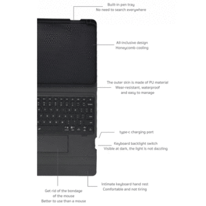 جنس این لوازم جانبی اپل آیپد پرو 12.9 اینچ کوتسی را ABS و چرم مصنوعی PU با کیفیت تشکیل داده است که ساختار سه بعدی و مقاومت در برابر ضربه را ارائه میدهد؛ ابعاد آن را 455*257*200 میلی متر و وزن 604 گرم تشکیل میدهد.