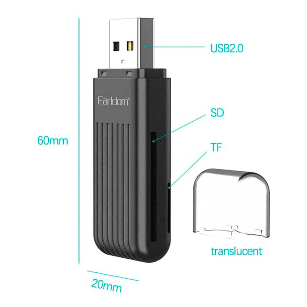 رم ریدر Earldom ET-OT96 از سرعت 480 مگابایت بر ثانیه با ظرفیت پشتیبانی 2 ترابایت و حداکثر ولتاژ 5V و جریان A=500mA برای دستگاه های سازگار پشتیبانی می کند و راهی سریع و راحت برای انتقال داده دستگاه های شما ارائه می دهد.