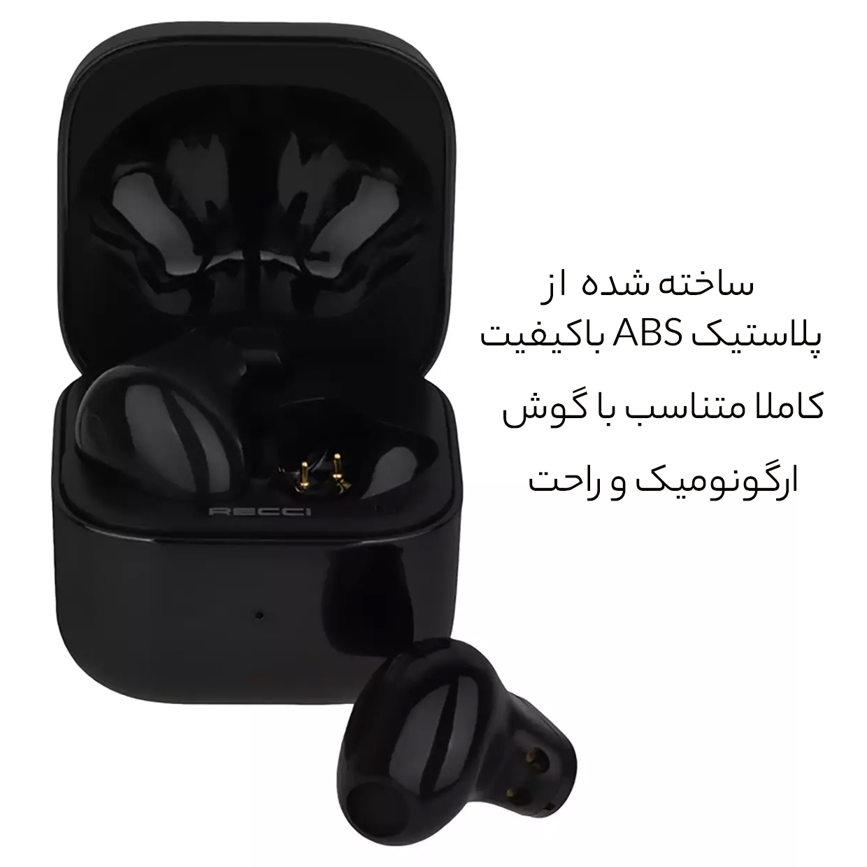 هندزفری بلوتوثی رسی مدل Recci RT18 Bloototh Earphone نمونهای باکیفیت از هندزفری وایرلس است که سبک بوده و استفاده طولانی مدت از آن شما را آزار نمیدهد. با طراحی کوچک جمع و جور،و کیس شارژ میتوانید آن را با خود حمل و در هر مکانی استفاده نمایید.