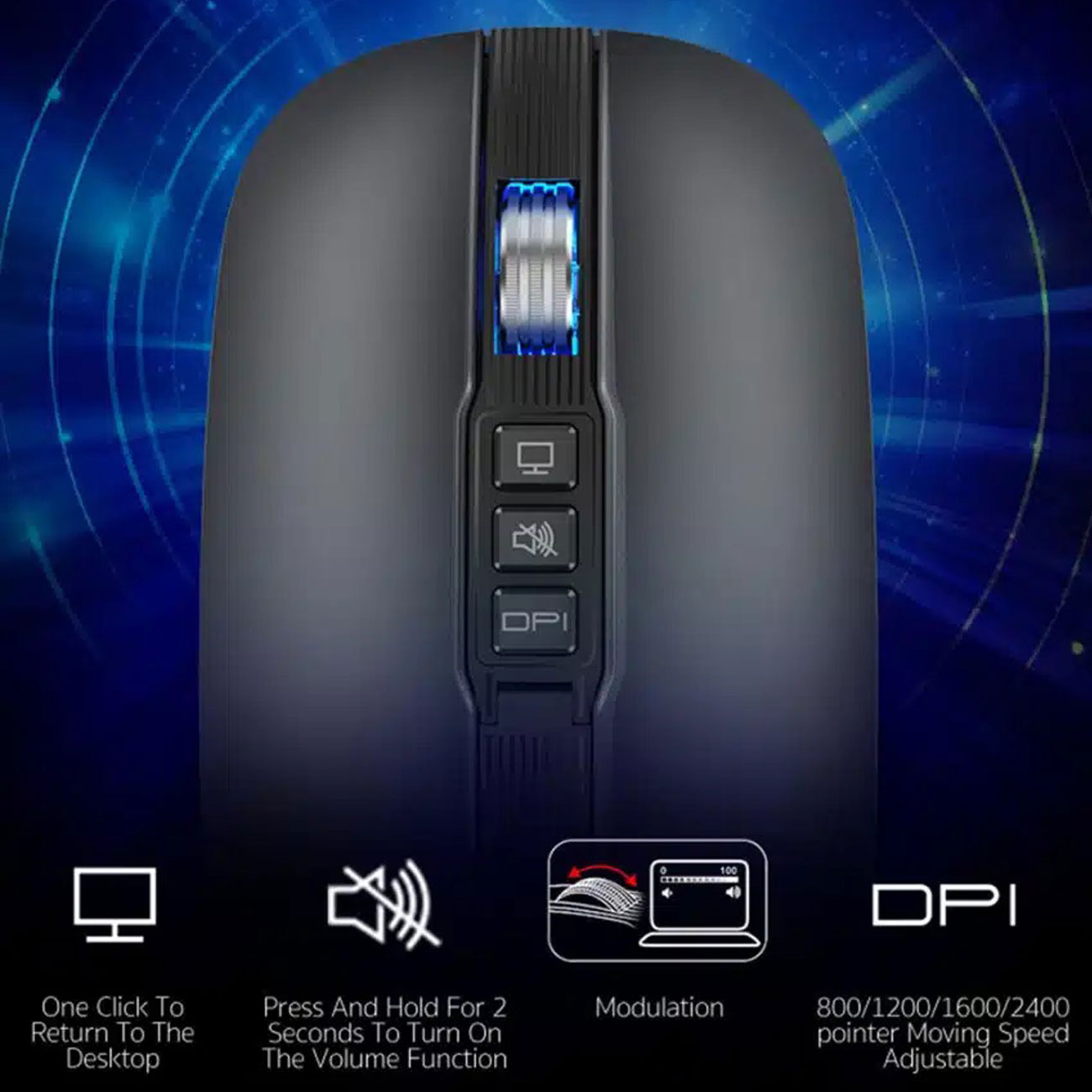 موس وایرلس کوتتسی دارای 7 کلید است؛ این کلید ها شامل کلید چپ و راست، کلید بازگشت به دسکتاپ، قطع کردن صدا، DPI، روشن و خاموش و کلید جا به جایی بین حالت بلوتوث و USB است. کلیکهای آن بیصدا هستند و مزاحمتی برای دیگران نخواهد داشت و تمرکز شما و اطرافیانتان را به هم نمیزند. همچنین دارای چراغهای LED نشانگر میزان باتری هم هست.