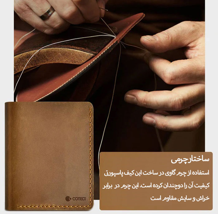 چرم درجه یک گاوی ساختار این کیف پول مدانه را تشکیل داده؛ ابعادی برابر با 9.4*11.5 سانتیمتر دارد و بسیار جمعوجور است؛ رنگبندیهای متنوع مشکی،قهوه ای تیره و قهوه ای روشن هم امکان انتخاب رنگ مورد سلیقهتان را فراهم کرده و بسیار جوانپسند است.