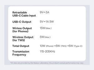 | توان خروجی | 10W (Phone) +5W (TWS) +5W (Type-C) |