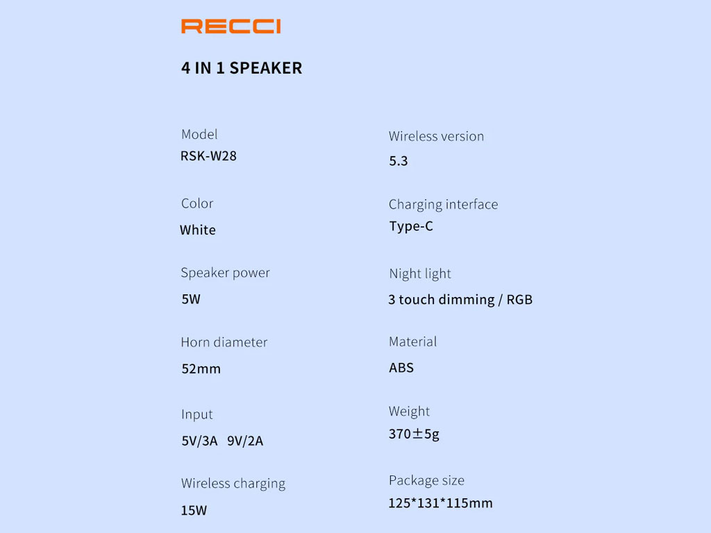 شارژر وایرلس رومیزی RSK-W28 یکی از محصولات فوقالعاده جذاب کمپانی رسی است که نه تنها عملکرد شارژر را در اختیار شما قرار میدهد بلکه یک اسپیکر هم هست و با اتصال بی سیم آن به موبایل یا لپتاپ میتوانسید حین شارژ گوشی آهنگهای مورد علاقه خود را هم گوش کنید. همچنین این محصول میتواند یک چراغ خواب رومیزی شیک هم باشد. علاوه بر اینها گزینه بسیار مناسبی برای استفاده به عنوان هولدر موبایل هم هست و میتوانید برای تماشای فیلمهای مورد علاقهتان یا شرکت در کلاسهای آنلاین از آن استفاده کنید.