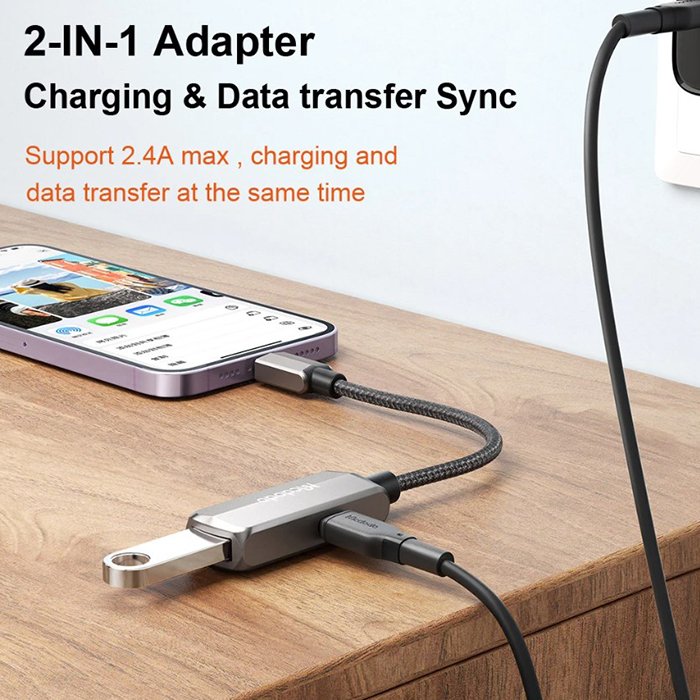 تبدیل لایتنینگ اتصال همزمان شارژر و یواسبی مکدودو مدل CA-2690