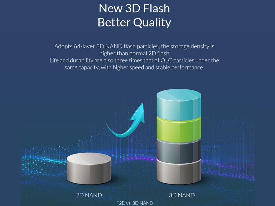 نسل فلش 3 بعدی NAND یکی از ویژگیهای فنی SSD داخلی است که ظرفیت ذخیره سازی بیشتر، راندمان بالاتر و قابلیت اطمینان خوب را ارائه می دهد. ظرفیتی برابر با 512 گیگابایتی M.2 NVMe SATA 3 دارد و عملکرد پایدار و کارآمد را تضمین میکند.