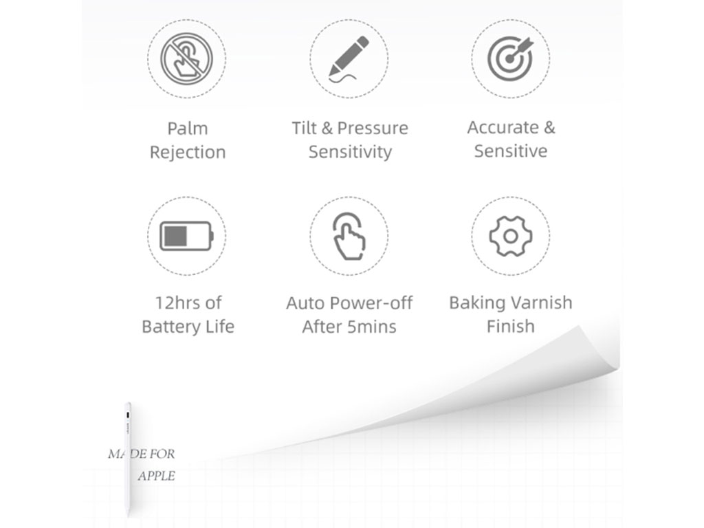 پلاستیک POM یک ماده بسیار منعطف با اصطکاک بالا بوده و در برابر سایش بسیار مقاوم است؛ بنابراین، نوک این قلم هوشمند آیپد در برابر آسیب بسیار مقاوم بوده و فوقالعاده روان است و از حساسیت و دقت بالایی برخوردار است. قطر نوک هم برابر با 1.5 میلیمتر است و قابل تعویض است.