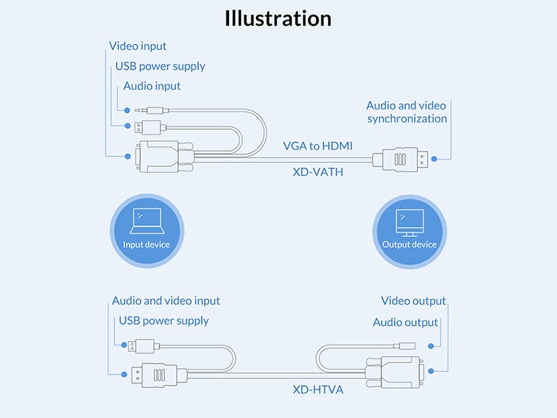 توجه: این کابل HDMI به VGA فقط از انتقال یک طرفه پشتیبانی می کند. ورودی و خروجی را نمی توان معکوس کرد. بنابراین از قبل بررسی کنید که چه نوع دستگاهی دارید.