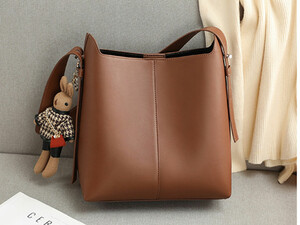 کیف دوشی زنانه چرم با ظرفیت بزرگ و طراحی ساده New Women's Leather Bucket Bag Large Capacity 5345