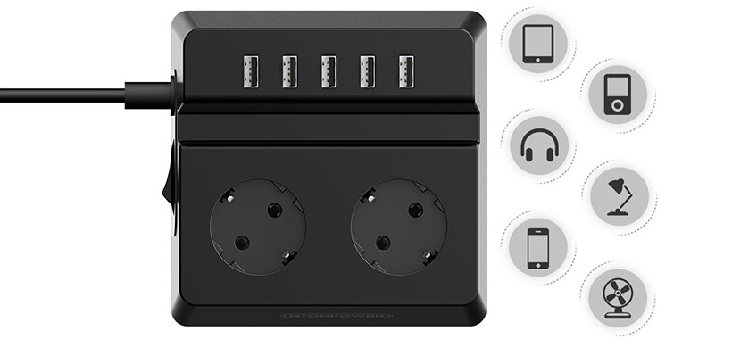 علاوه بر 2 پریز برق، 5 پورت یو اس بی نیز روی این چندراهی اوریکو وجود دارد که از این شارژر USB برای شارژ هر دستگاه دیجیتالی توسط کابل USB می توان استفاده کرد. هر بار دستگاه هایی را به این شارژ متصل می کنید، اوریکو ODC-2A5U-V1-EU اتصال را تشخیص داده و سپس شروع به شارژ آن می کند.