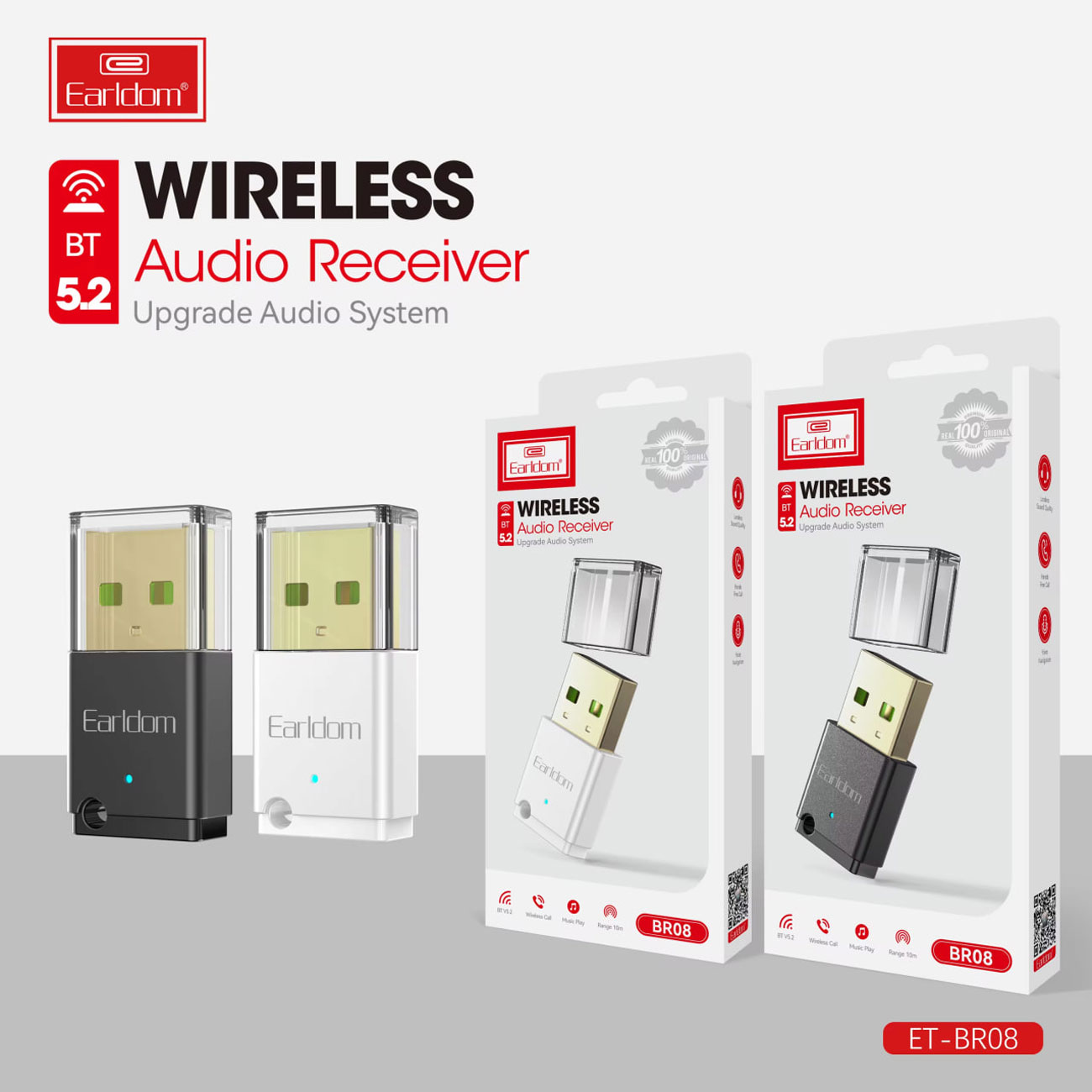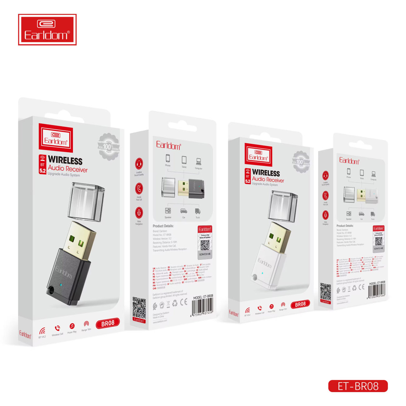 EARLDOM USB Blue-tooth 5.2 Adapter Receiver Transmitter ET-BR08