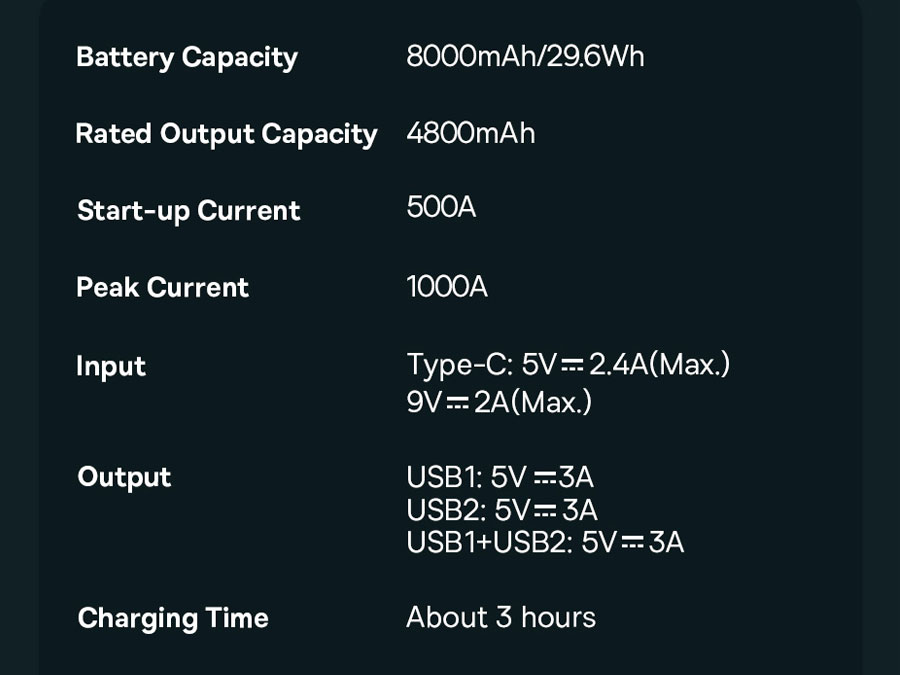 | ظرفیت اسمی | 8000 میلیآمپرساعت |