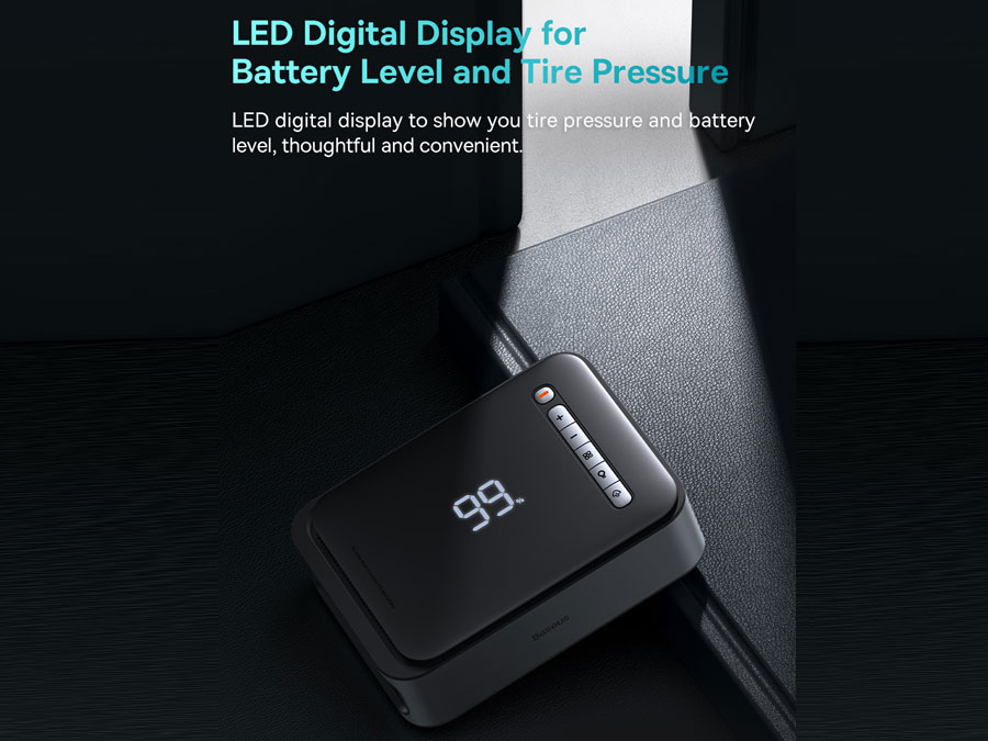 ابعاد جامپ استارتر بیسوس 171*124*55 میلیمتر بوده و وزنی برابر با 1360 گرم دارد و حمل و ذخیرهسازی آن راحت است. طراحی بسیار ساده اما شیکی دارد و مواد ABS ساختار مقاوم به آن بخشیده است. تعدادی کلید برای اجای دستوردات مورد نظر روی بدنه طراحی شده و نمایشگر LED بزرگی هم در طراحی آن به چشم میخورد که فشار باد لاستیک و میزان باتری را به اطلاعتان میرساند.