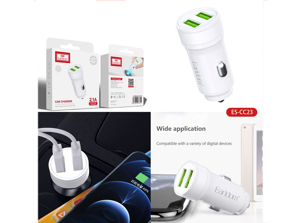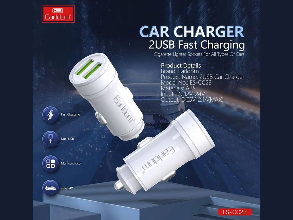 استفاده روز افزون از لوازم دیجیتال باعث شده است نیاز همیشگی به شارژ این دستگاه ها وجود داشته باشد برای افراد در سفر استفاده از یک شارژر فندکی ماشین کمک بسیار بزرگی در بر طرف کردن این نیاز است. شرکت ارلدام یکی از شرکت های تولید کننده لوازم جانبی گوشی های تلفن همراه به صورت گسترده است. شارژر خودرو EARLDOM ES-CC23 با دارا بودن 2 خروجی USB همراه با پشتیبانی از قابلیت شارژ سریع، استفاده از ABS مقاوم در برابر حرارت در ساخت بدنه ازجمله محصولات این شرکت است که در رده محصولات اقتصادی قرار می گیرد.