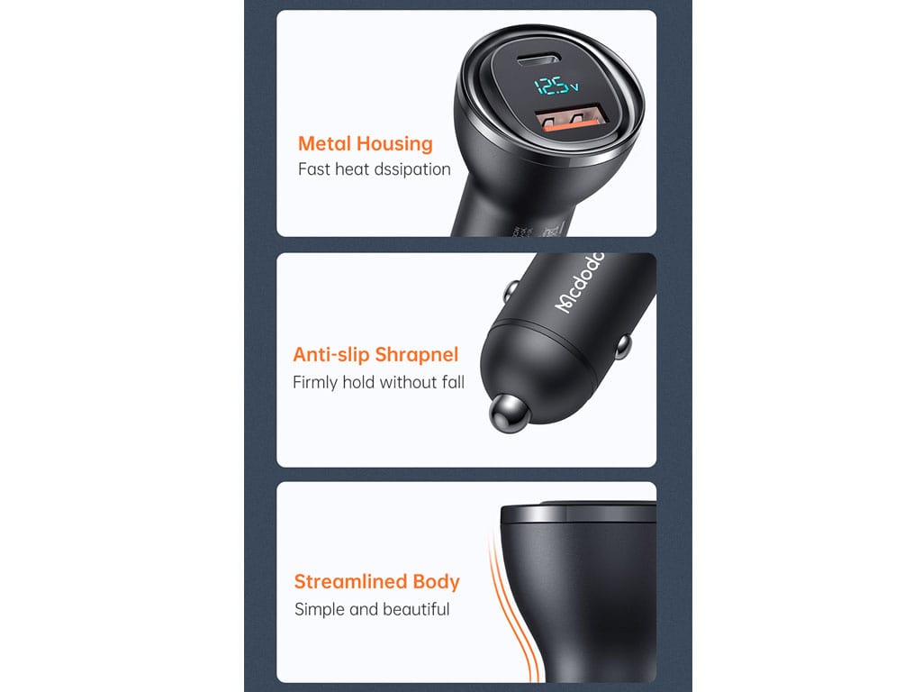 بدون شارژ بودن موبایل با وجود کاراییهایی که این ابزار در اختیار همه قرار داده به یک دغدغه تبدیل شده است؛ به همین دلیل برای اینکه کاربران گوشی تلفن در مواقعی که در بیرون از منزل هستند یا به برق دسترسی ندارند کمپانیها دست به تولید انواع شارژرها مانند پاوربانک و شارژر خودرو زدهاند. این صفحه به یکی از شارژرهای موبایل داخل ماشین که محصولی از کمپانی مکدودو است اختصاص یافته و عنوان تجاری آن شارژر فندکی فست شارژ خودرو یواسبی و تایپسی مکدودو MCdodo CC-5670 95W Digital Display Fast Car Charger است.