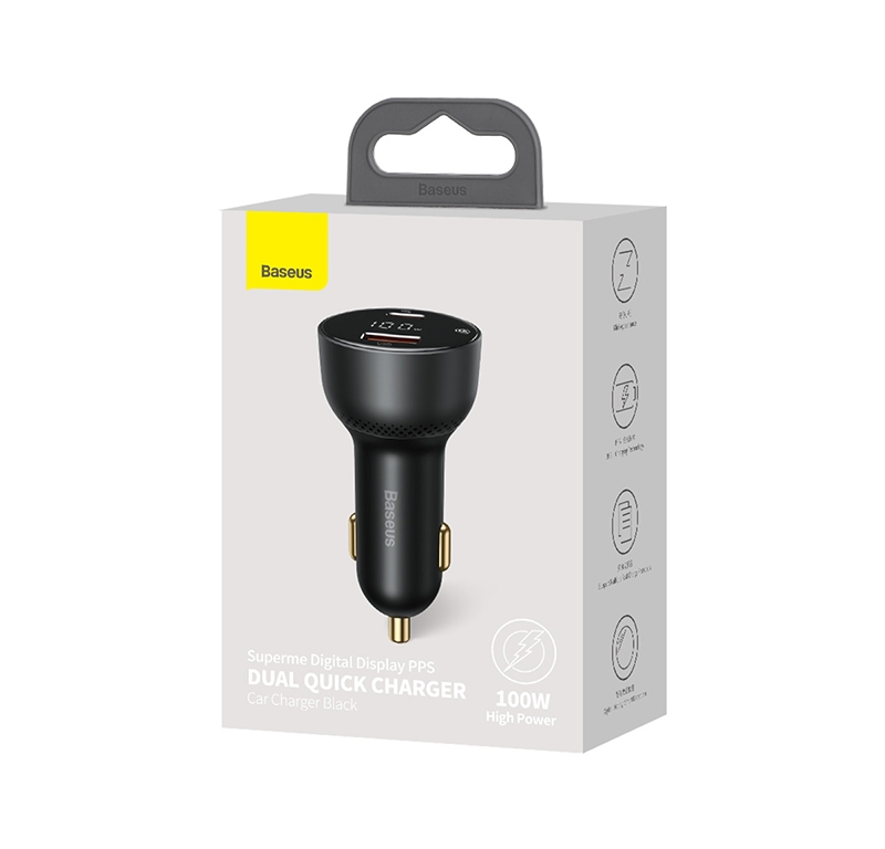 بیسوس برای حل این مشکل شارژر فندکی 2 پورت Baseus Supreme Digital Display PPS را طراحی کرده که دارای مجموع توان 100 وات میباشد و از دو پورت تایپ سی و یو اس بی بهره میبرد.
