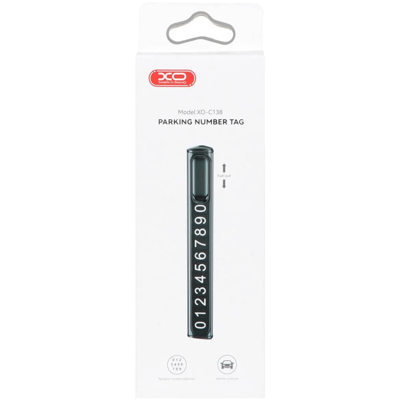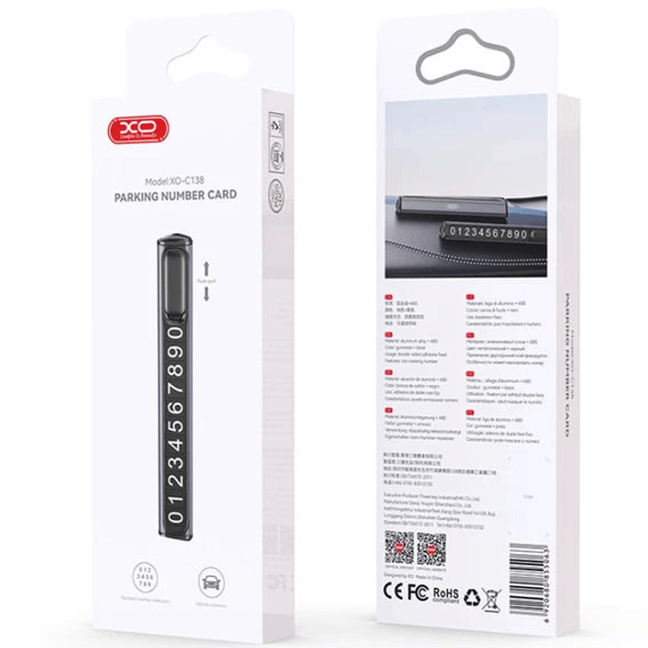 دستگاه اعلام شماره تلفن پارک خودرو ایکس او C138 شامل چند مجموعه استیکر با اعداد 0 تا 9 است که خواندن اعداد بیرون و خارج از پنجره ماشین حتی در تاریکی را آسان می کند.