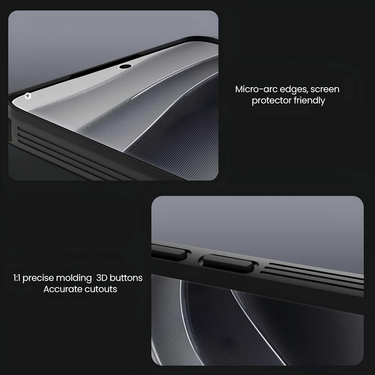 از دیگر ویژگیهای این قاب، برشکاری دقیق آن برای دسترسی آسان به درگاهها، دکمهها، دوربین و اسپیکر است. این طراحی به شما این امکان را میدهد که بدون نیاز به خارج کردن قاب، به تمامی امکانات گوشی خود دسترسی داشته باشید. همچنین خطوط مورب و منظم موجود در پشت و کنارههای قاب، احساس راحتی بیشتری را در هنگام استفاده فراهم میکند و از لیز خوردن گوشی در دست جلوگیری میکند.