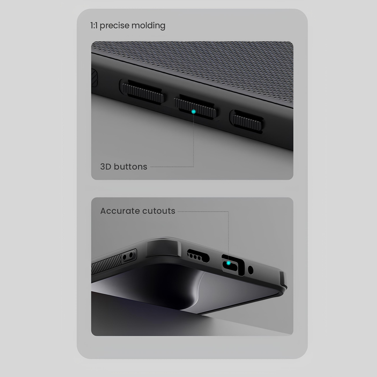 - برشکاری دقیق: کاور نیلکین Super Frosted Shield Pro دارای دکمههای 3D و برشهای دقیق است که دسترسی به تمامی پورتها و دکمهها را تسهیل میکند.