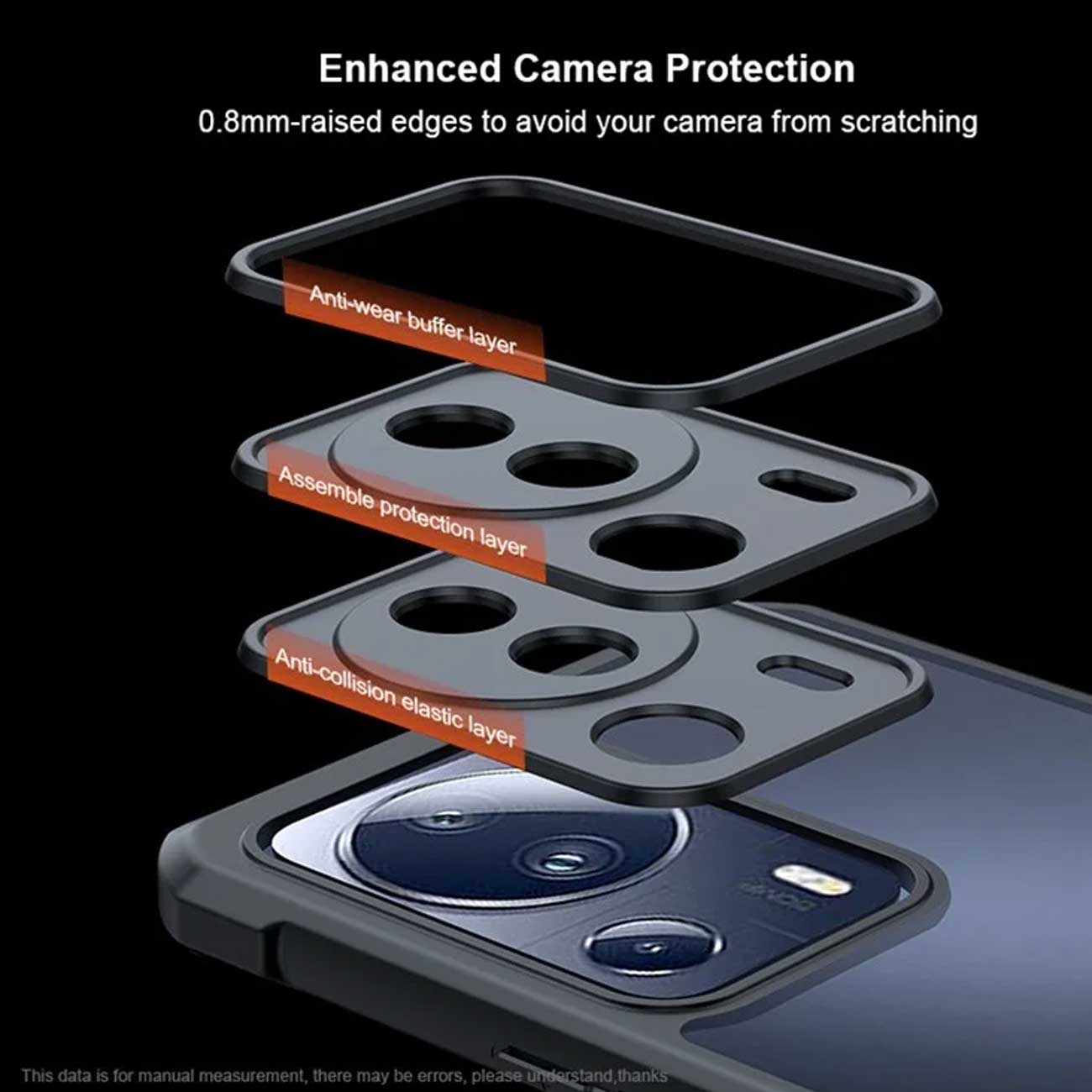 حاشیههای کاور و اطراف دوربین کریستال شیلد شیائومی 13 لایت حاشیهای 8 میلیمتری در نظر گرفته شده تا هنگام قرار گرفتن روی سطح فاصلهای ایجاد شود و خراشی در این قسمتها ایجاد نشود.