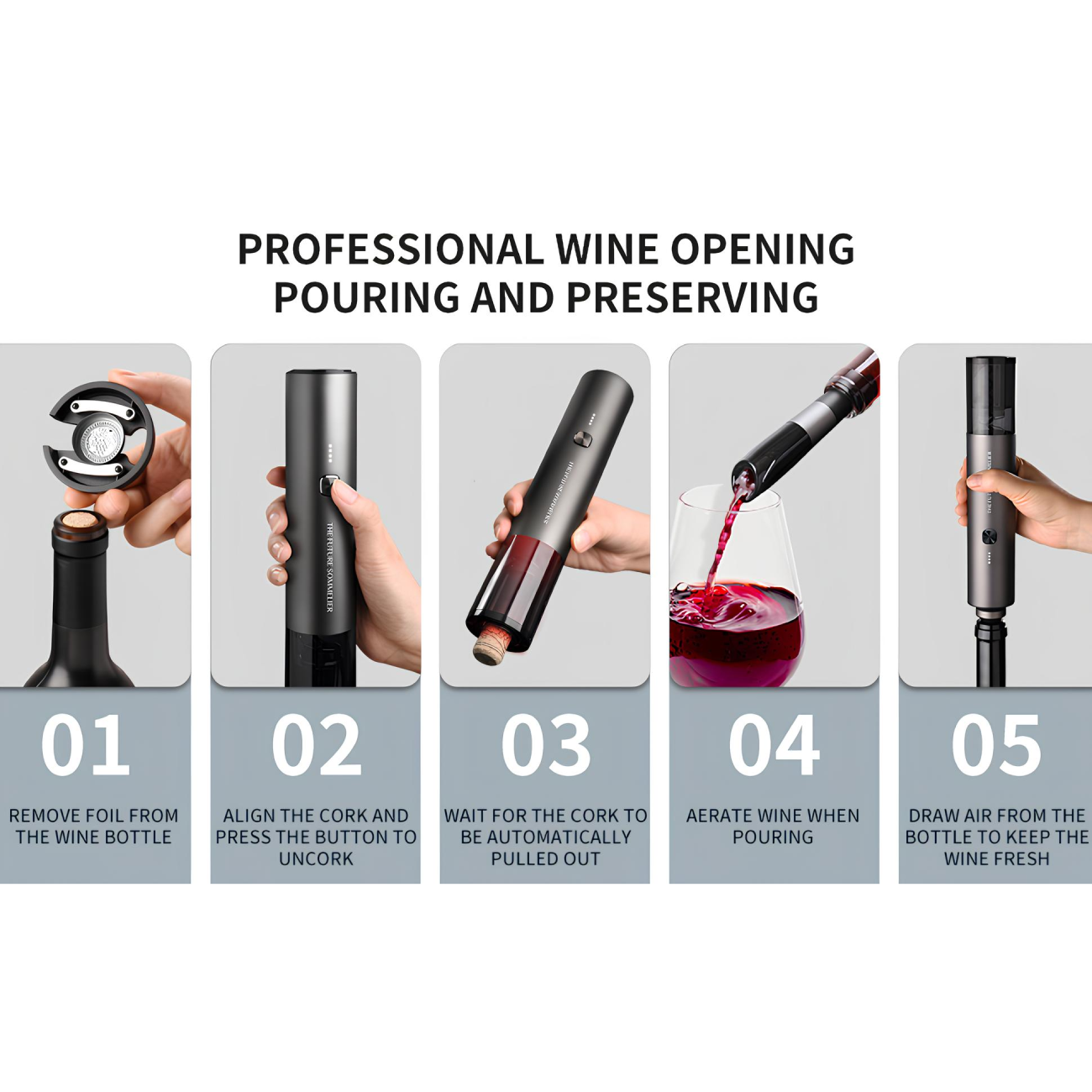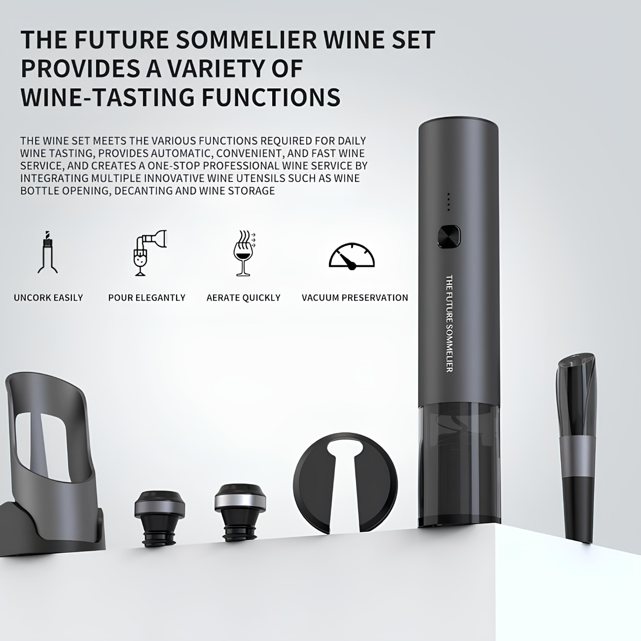| عملکرد اصلی | باز کردن، ریختن، هوا دهی و نگهداری از نوشیدنی |