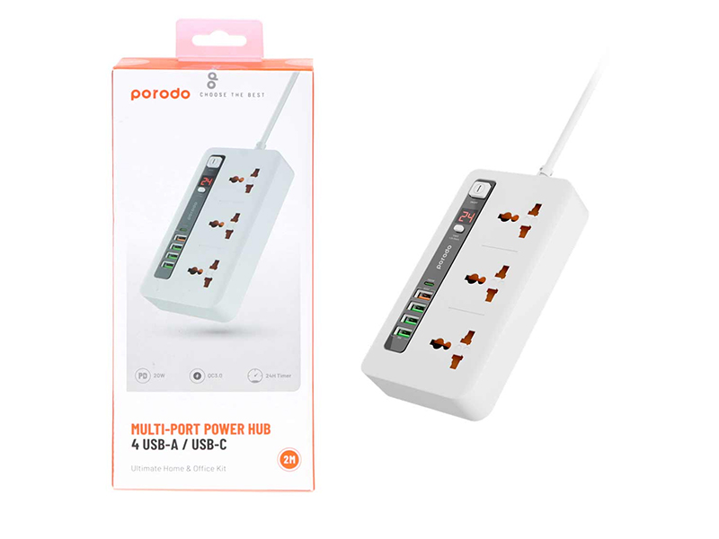 چند راهی برق سه سوکت، 4 یو اس بی، 1 تایپ سی دو متری پورودو Porodo FWCH013 Multi-Port Power HUB 4 USB-A/USB-C Kit 2M