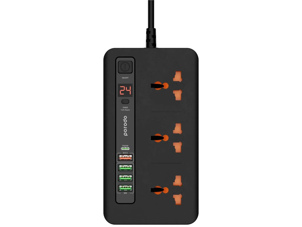 برای برآورده ساختن خواستههای همه افراد، هاب برق چند پورت Porodo به طور ویژه توسعه داده شد. برای شارژ طیف گسترده ای از دستگاهها، از جمله تلفن، رایانه، جاروبرقی هوشمند، اسباب بازی و بسیاری دیگر، هاب برق چند پورت ایده آل است. علاوه بر این، دارای سه سوکت AC و 4 یو اس بی 1 تایپ سی است که میتواند برق مورد نیاز دستگاه مختلف را به طور همزمان تامین کند.