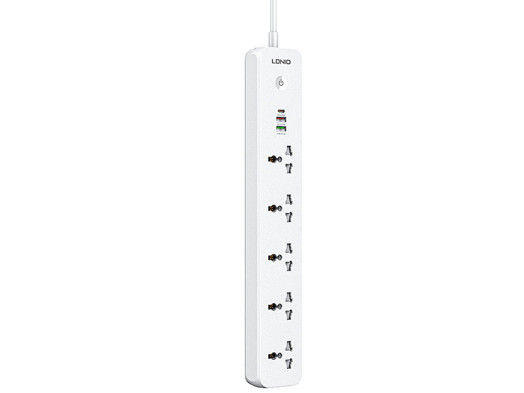 چند راهی برق پنج سوکت، دو یو اس بی و یک تایپ سی الدنیو LDNIO SC5319 5 Port + 3 USB Power Socket Plug Extension Wall Charger