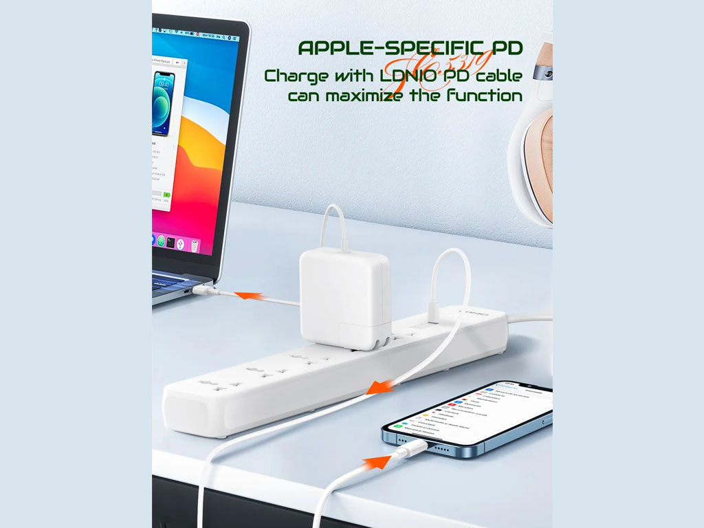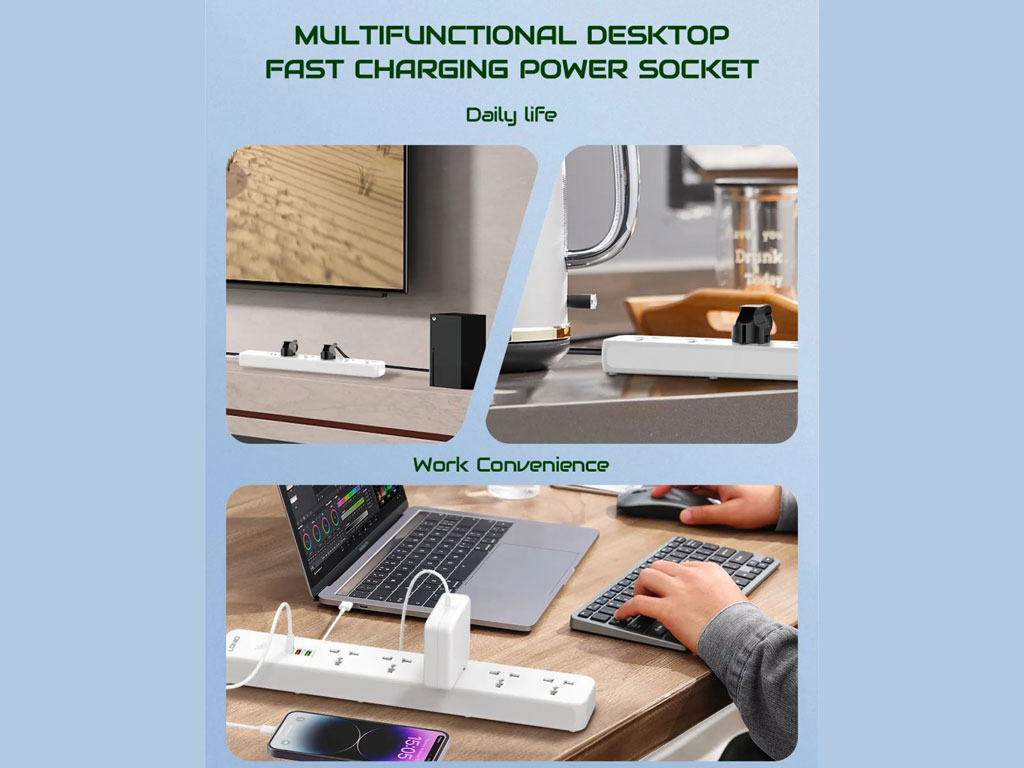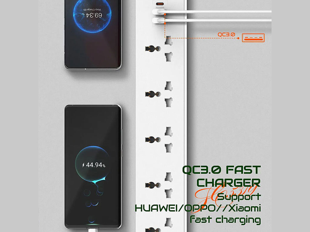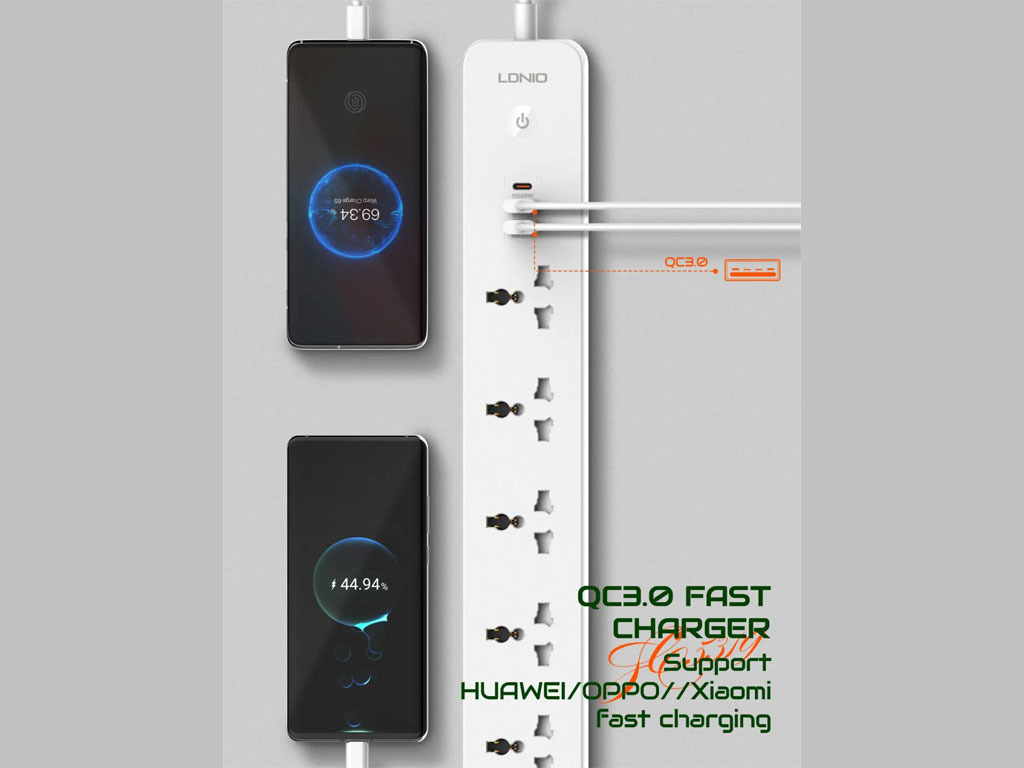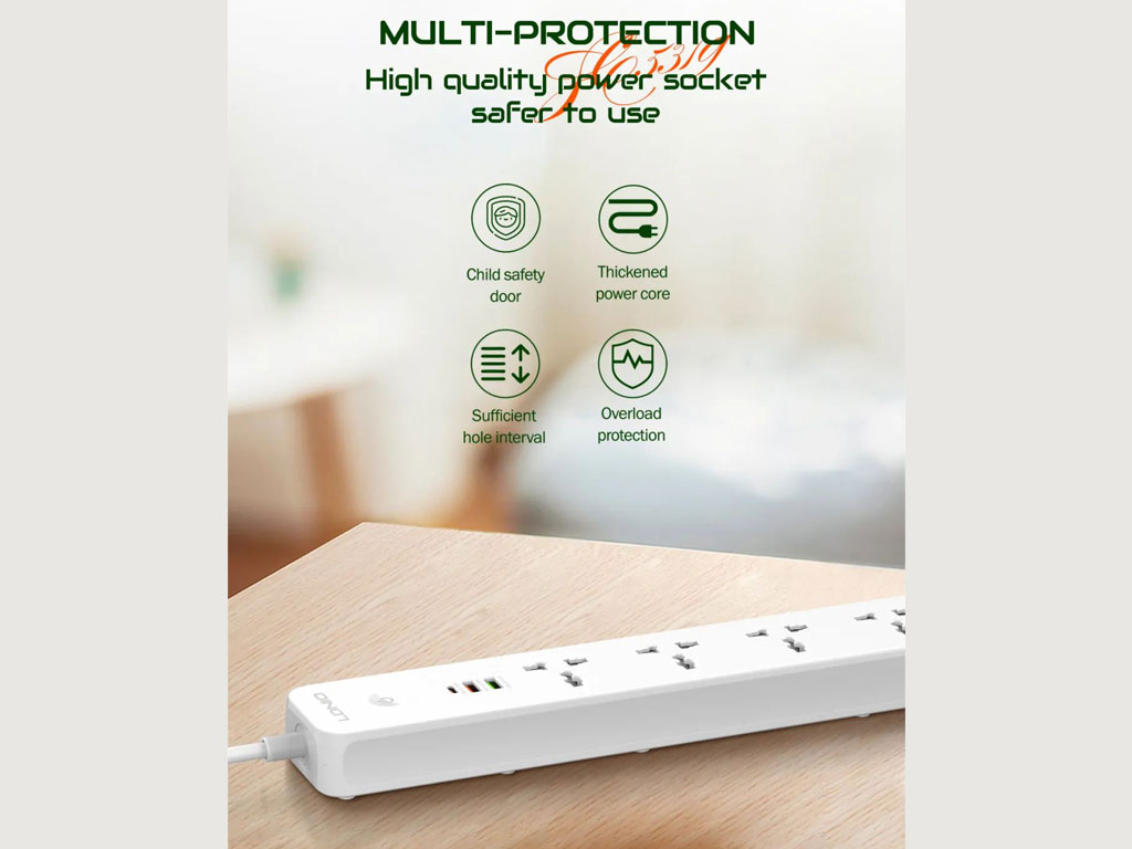 این چندراهی با داشتن پنج پریز برق AC، دو پورت یو اس بی و یک درگاه تایپ سی قادر به تامین برق 8 دستگاه به صورت همزمان است. با خرید چندراهی برق الدنیو SC5319 نیازی به داشتن آداپتورهای متفاوت برای شارژ کردن گوشیهای همراه یا دیگر لوازمهای برقی نخواهید داشت و این دستگاه به تنهایی قادر به تامین نیروی مورد نیاز همه دستگاههای برقی است. اما باید این نکته را متذکر شد که در صورت استفاده همزمان از تمامی درگاهها، جریان بین آنها تقسیم میشود.