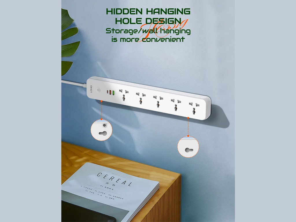 پریزهای آن طوری طراحی شدهاند که انواع دوشاخه و سه شاخهها قابل اتصال باشند. به این صورت که سوراخهای پریز هر طرف با طرف دیگر متفاوت است و جهتی مخالف هم نیز دارند. فاصله سوکتها از هم 53 میلیمتر است و با اتصال انواع دوشاخهها کنار هم مشکل کمبود جا برای پلاگینها نخواهید داشت.