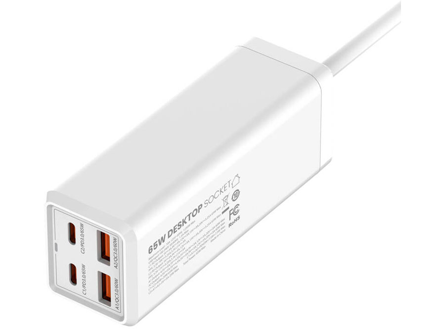 امکان شارژ محصولات اپل شامل گوشی و تبلت های این برند با پشتیبانی از استاندارد PD 3.0 با توان خروجی حداکثر 65 وات به وسیله درگاه تایپ سی و همچنین پشتیبانی از استاندارد QC 3.0 برای سایر گوشی های اندروید روی درگاه USB-A با توان خروجی 60 وات را داراست.