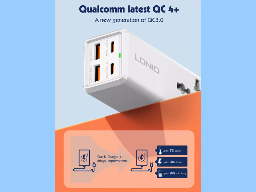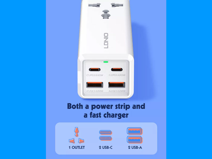 برای رفع این مشکل شرکت الدنیو اقدام به تولید LDNIO SC1418 portable mini smart power outlet desktop plug AC power نموده است که علاوه بر دارا بودن 2 خروجی Type-C با پشتیبانی از استاندارد PD 3.0 و 2 خروجی USB دارای قابلیت پشتیبانی از استاندارد QC 3.0 یک سوکت AC با استاندارد های UK/EU/US را با پشتیبانی از توان واقعی 2500 وات در اختیار شما قرار می دهد که می توانید برای دستگاهایی تا حداکثر توان فوق استفاده شود.