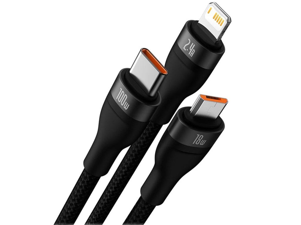 | مشخصات کابل سوپر فست شارژ سه سر یواسبی به میکرو، تایپسی و لایتنینگ 1.2 متر بیسوس Baseus 100W CASS030001 | |