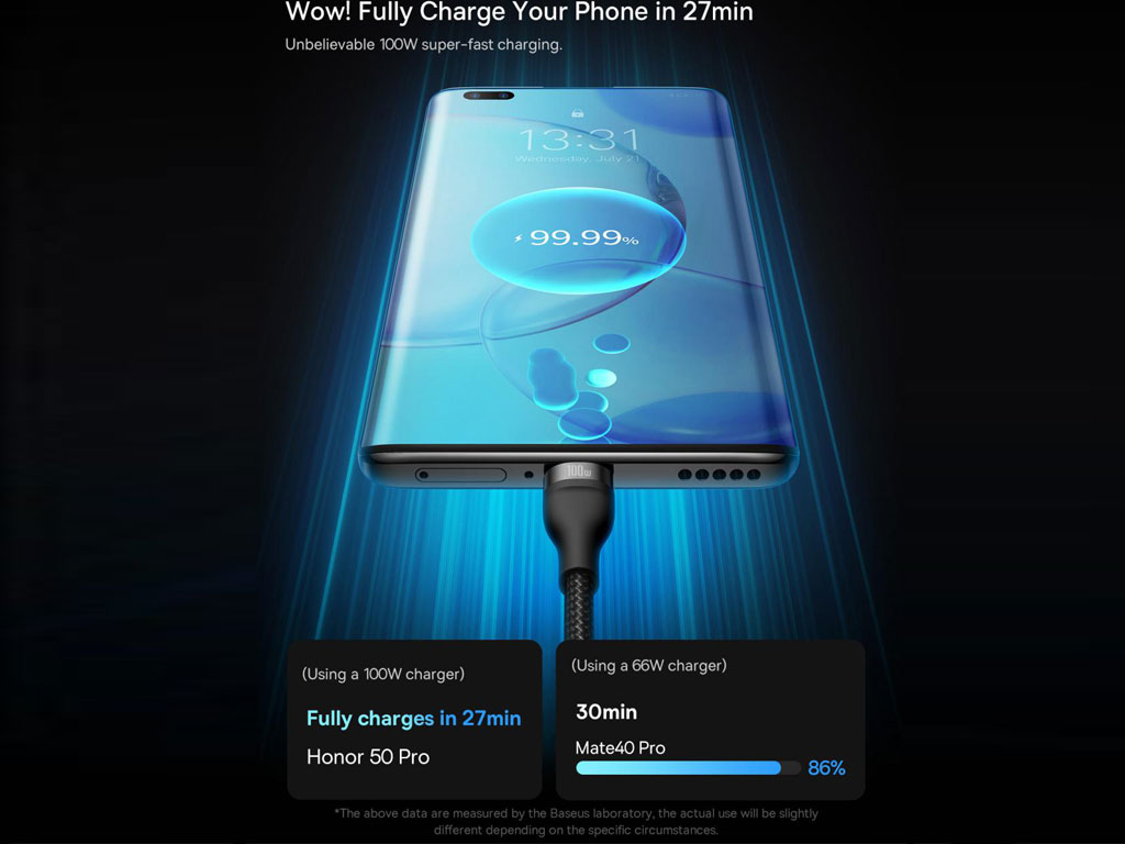 کابل شارژ سریع CASS030003 با شدت جریان 100W (6A) خود قادر به شارژ انواع دستگاهها از جمله لپتاپ خواهد بود؛ این کار با کانکتور تایپسی امکانپذیر است. با توجه به IC هوشمند به کار رفته در ساختمان آن، ولتاژ مورد نیاز دستگاه را تنظیم کرده و انرژی بهینهای را برای شارژ دستگاههایتان فراهم میکند.