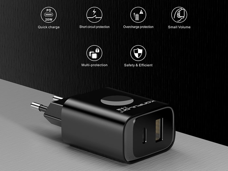 قابلیت شارژ سریع یکی از مهمترین نکاتی است که کاربران در هنگام خرید شارژر دیواری به آن توجه میکنند. زیرا حالا دیگر اکثر گوشیهای تازه عرضه شده از قابلیت فست شارژ پستیبانی کرده و سرعت شارژ باتری را به شکل قابل توجهی بالا بردهاند. آداپتور شارژ سریع Konfulon C70Q Type-C PD 22.5W محصولی دیگر از کمپانی کانفلون بوده و دارای 1 پورت USB Type C است که از پروتکل PD پشتیبانی میکند.