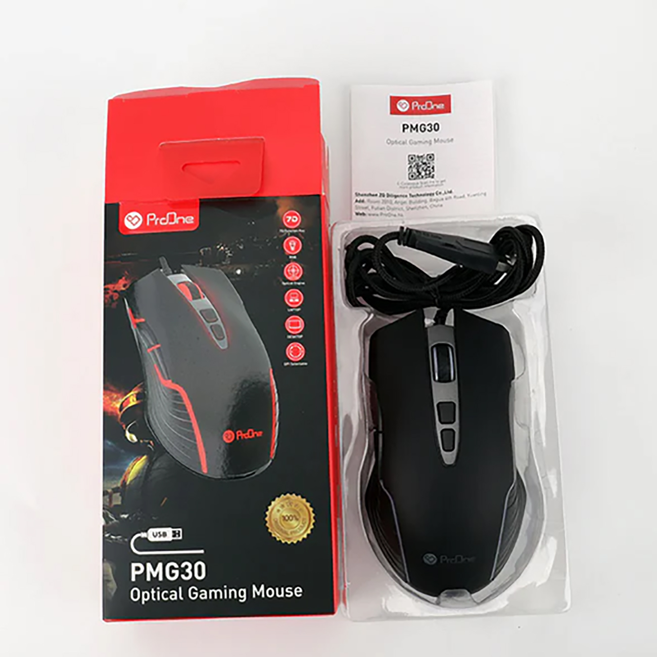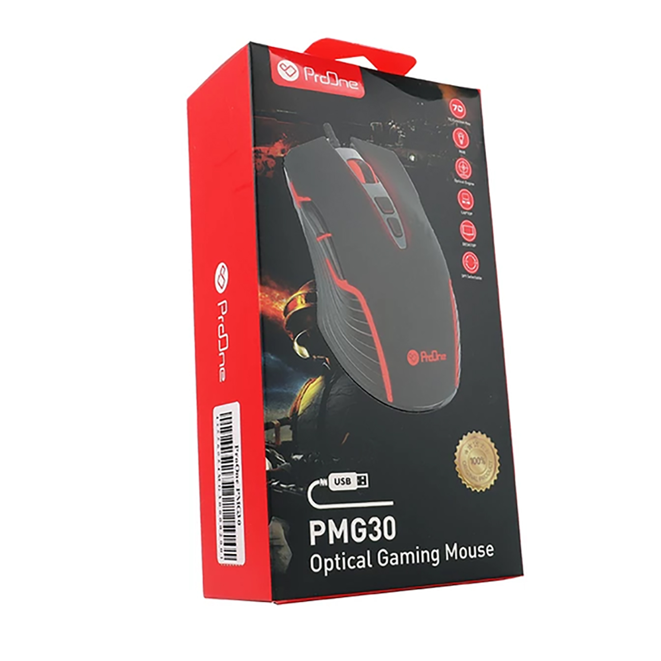 ProOne PMG30 Mouse مجهز به سیم 1.5 متری است و فوقالعاده باکیفیت بوده و انعطافپذیری بالایی دارد. سیم از طریق رابط USB به سیستم شما به راحتی متصل میشود.