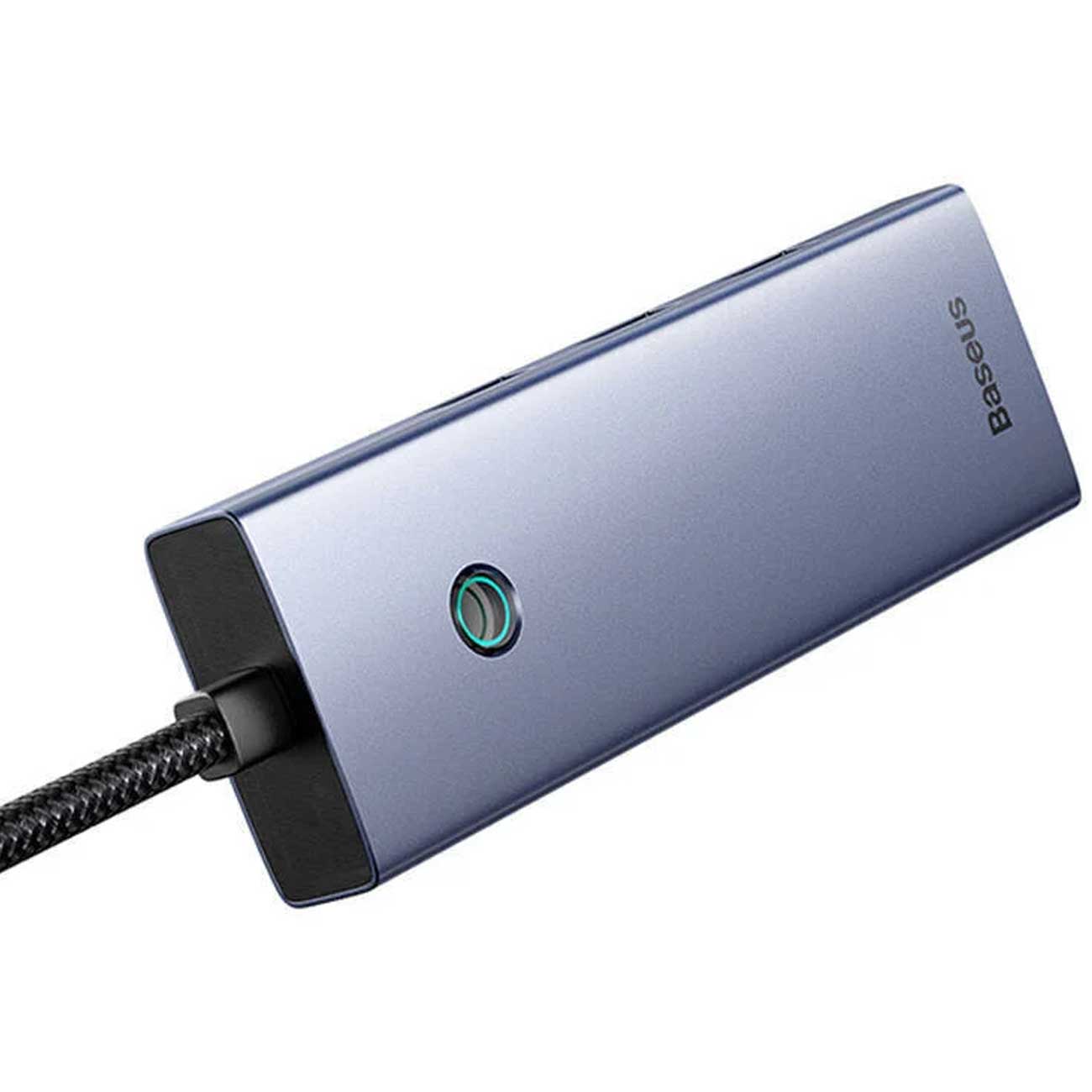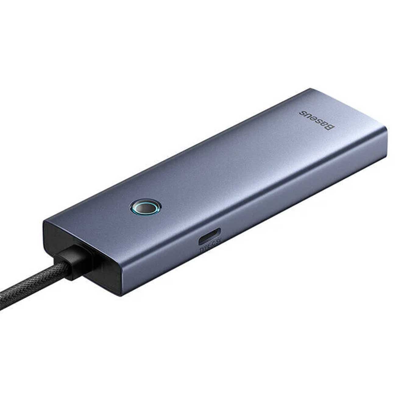 Baseus UltraJoy Series Lite 4-Port Hub یک لوازم جانبی همه کاره و بسیار کاربردی است. با 3 پورت USB 3.0 با سرعت انتقال داده 5 گیگابایت بر ثانیه، راه حل مناسبی برای کسانی است که به دنبال عملکرد و تحرک هستند. علاوه بر این، دارای یک پورت RJ45 مناسب برای اتصال کابل اینترنت با شرعت 1000Mbps است.