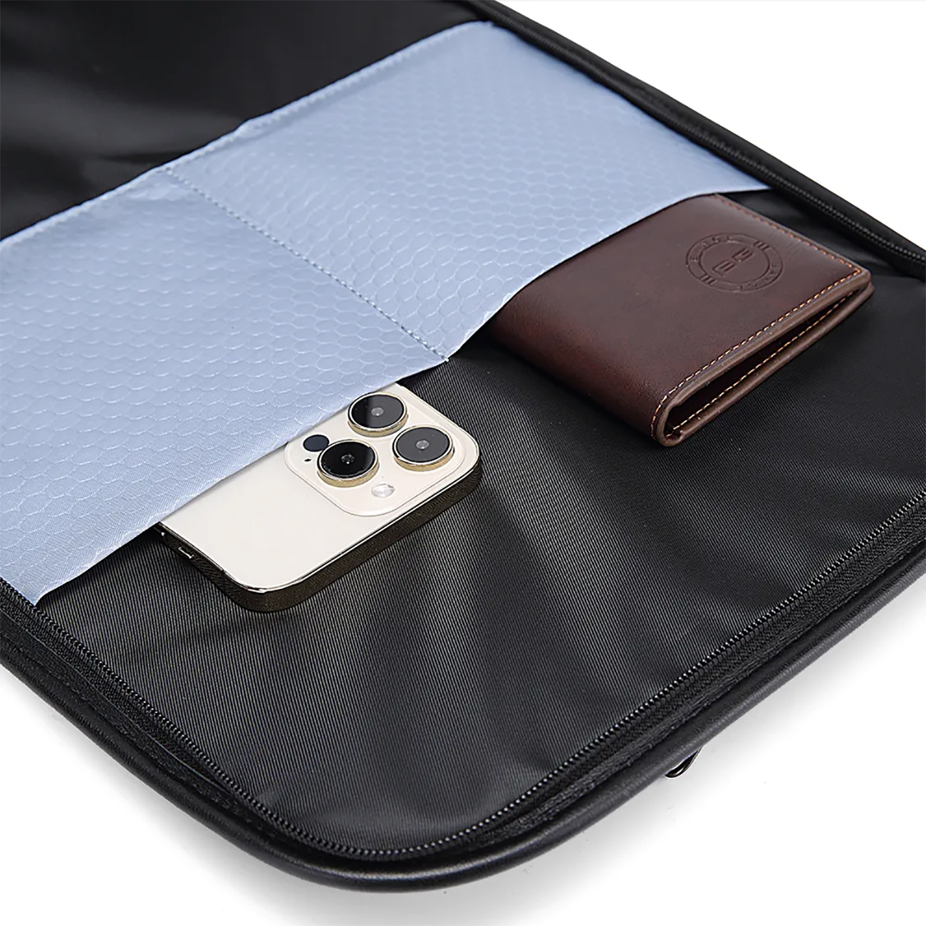 در قسمت پشتی نیز یک کمربند نایلونی تعبیه شده است که به لطف آن میتوانید کوله پشتی تجهیزات عکاسی را روی دسته کیف پرواز قرار دهید و مسیر سفر را برای خود آسان و لذت بخش نمایید.