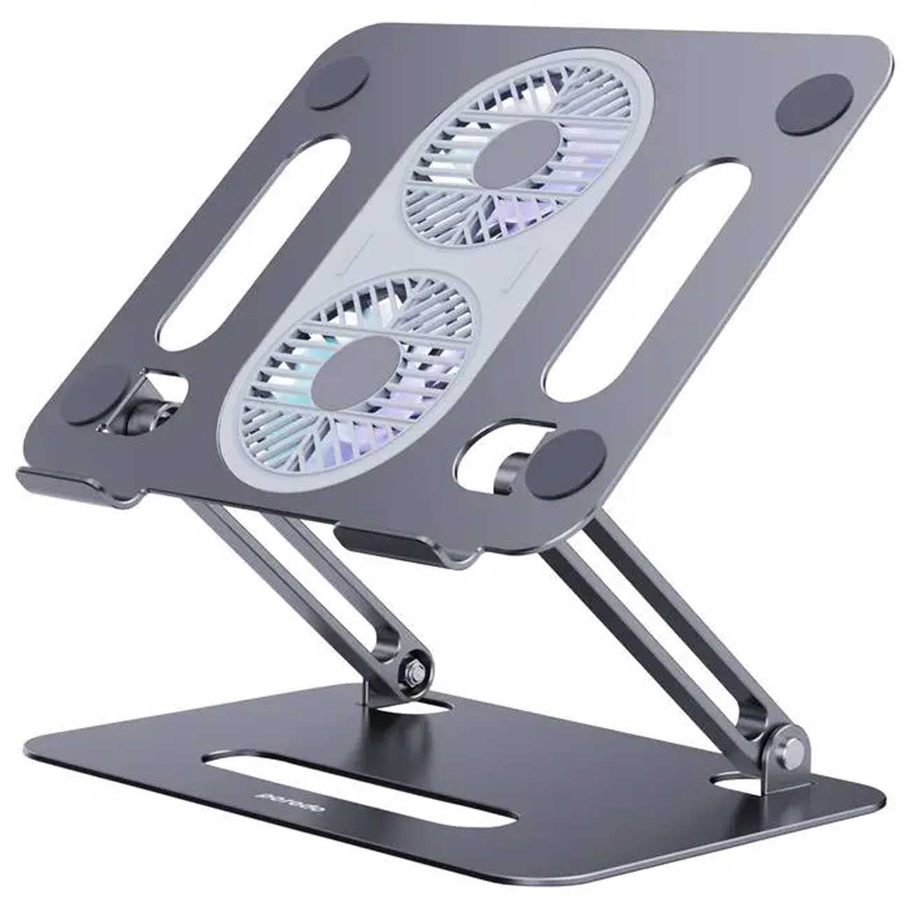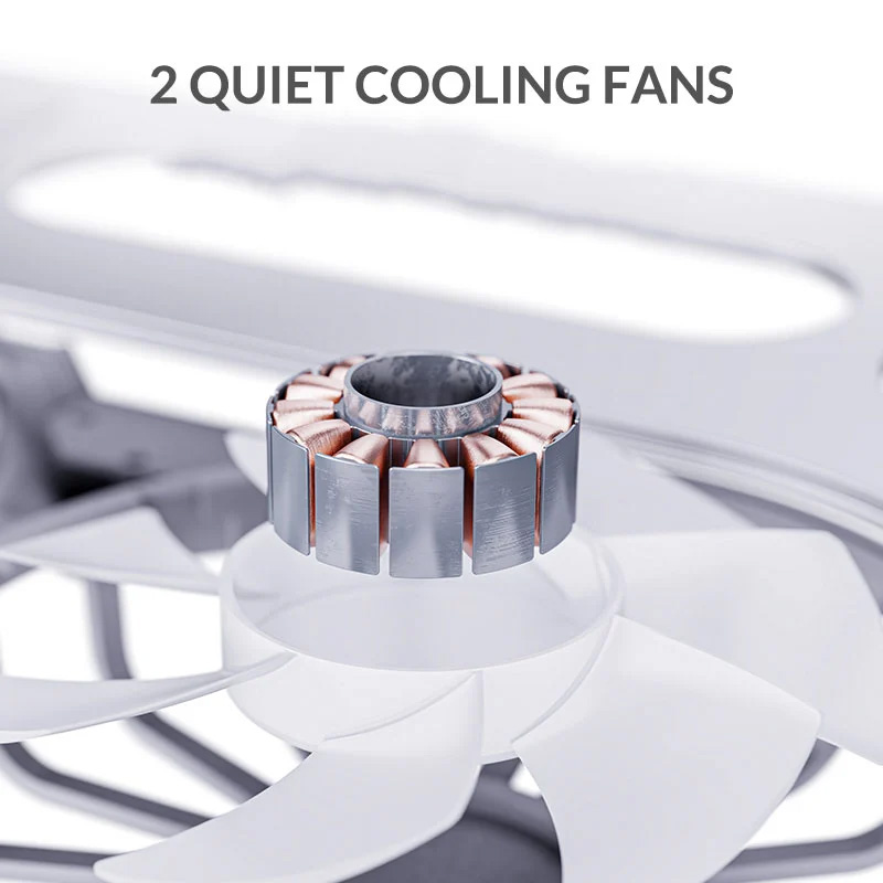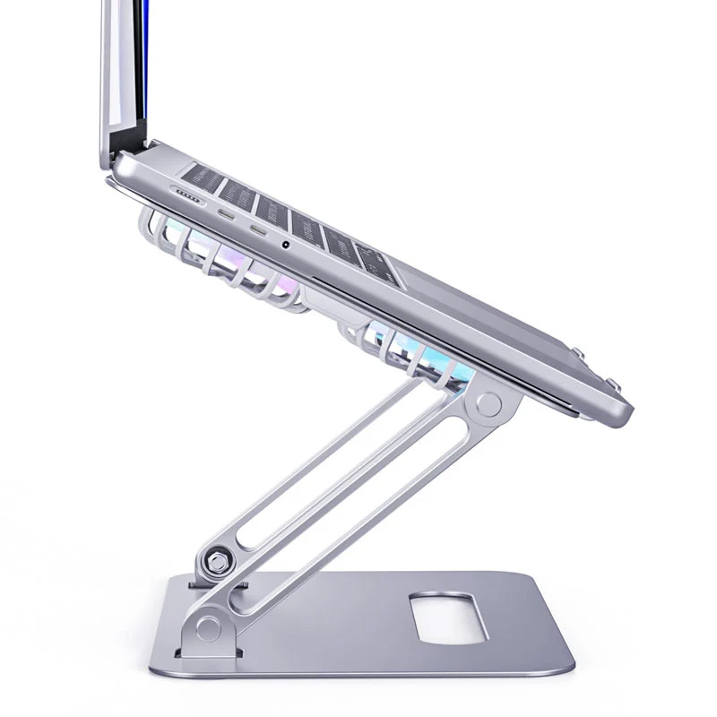 علاوه بر اینکه پایه لپ تاپ کاملاً از آلیاژ آلومینیوم ضخیم ساخته شده است، که می تواند گرما را به راحتی جذب و به اتلاف آن کند. همچنین دارای سوراخ ها و 2 فن خنک کننده بزرگ و بی صدا روی سطح است که مجهز به نور پردازی RGB است و می تواند لپ تاپ شما را به بهترین شکل ممکن خنک کند.