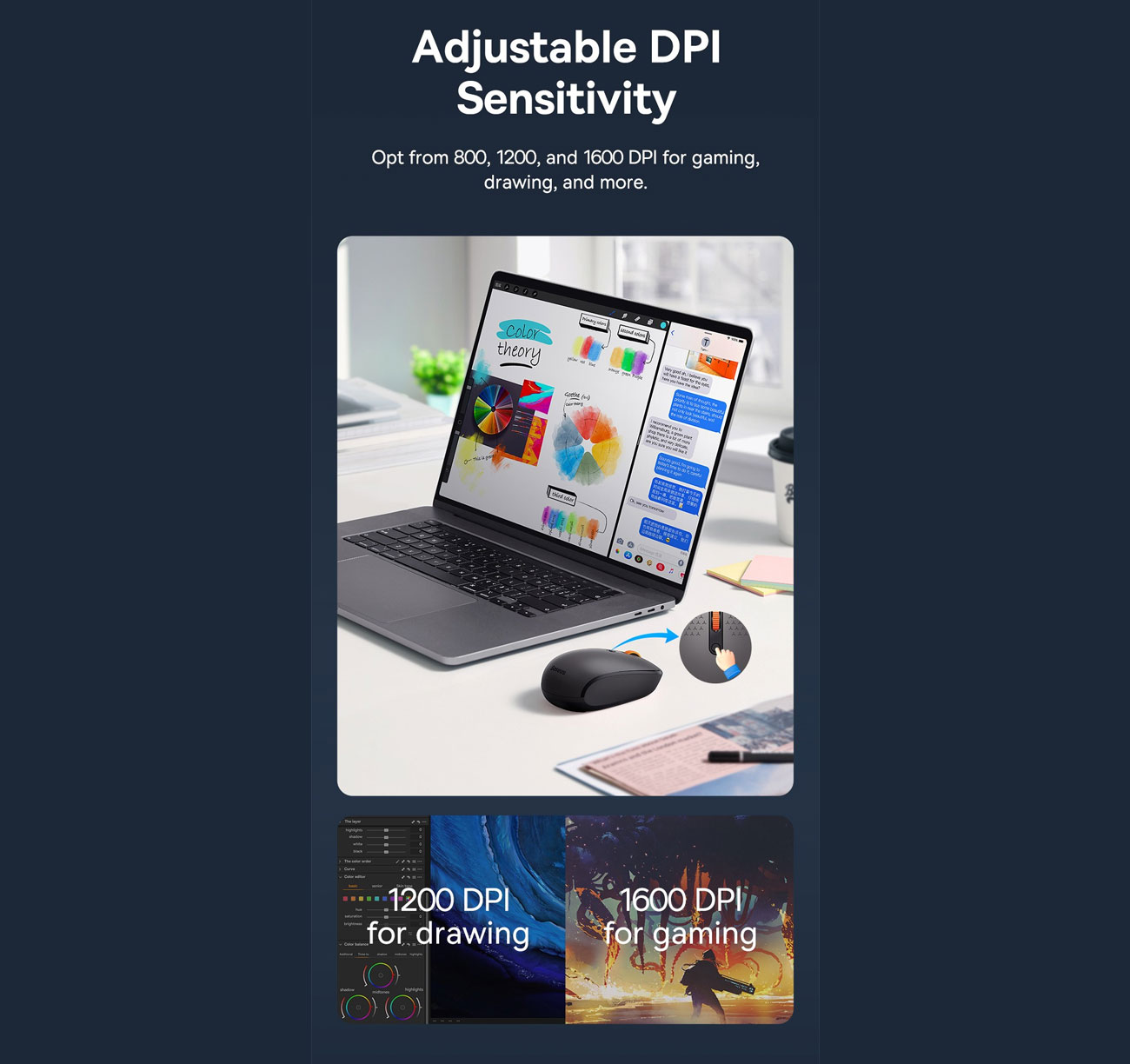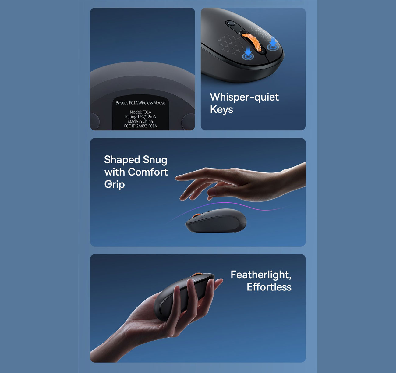 ماوس بلوتوثی بیسوس مدل F01B B01055502833 دارای حساسیت 800-1200-1600 DPI میباشد. کوچکترین حرکات مکان نما را ردیابی میکند. ماوس پاسخ کامل به هر حرکتی را تضمین میکند.