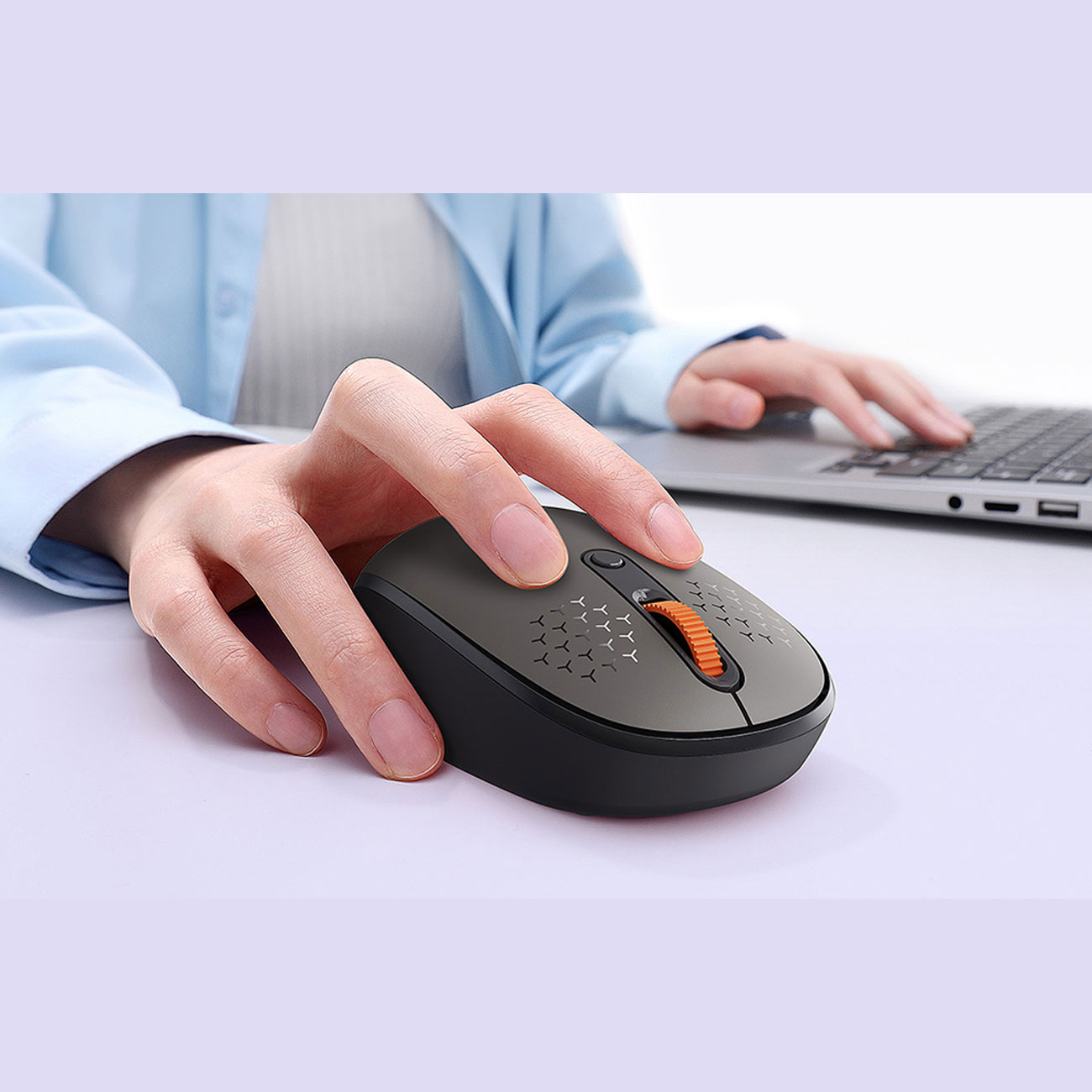 برای این لوازم جانبی لپ تاپ بلوتوث ورژن 3.0 و 5.0 در نظر گرفته شده که قابل اتصال به دو دستگاه هم زمان را فراهم میکند و با یک کلید که در زیر موس قرار دارد میتوانید بین آنها جا به جا شوید؛ پیوند دو حالته BT0.3/BT0.5 و 2.4G را در اختیار دارید و میتوانید این موس را به دو حالت استفاده کنید که اتصالی بسیار سریع و پایدار را رقم میزند؛ این موس به دو حالت قابل استفاده است؛ هم به صورت اتصال با بلوتوث و هم با استفاده از دانگل؛ برای اتصال با دانگل 2.4G نیز شما میتوانید مانند بسیاری از موس های وایرلس، دانگل مربوط به موس را به یو اس بی کامپیوتر متصل کنید و پس از روشن کردن موس با آن کار کنید.