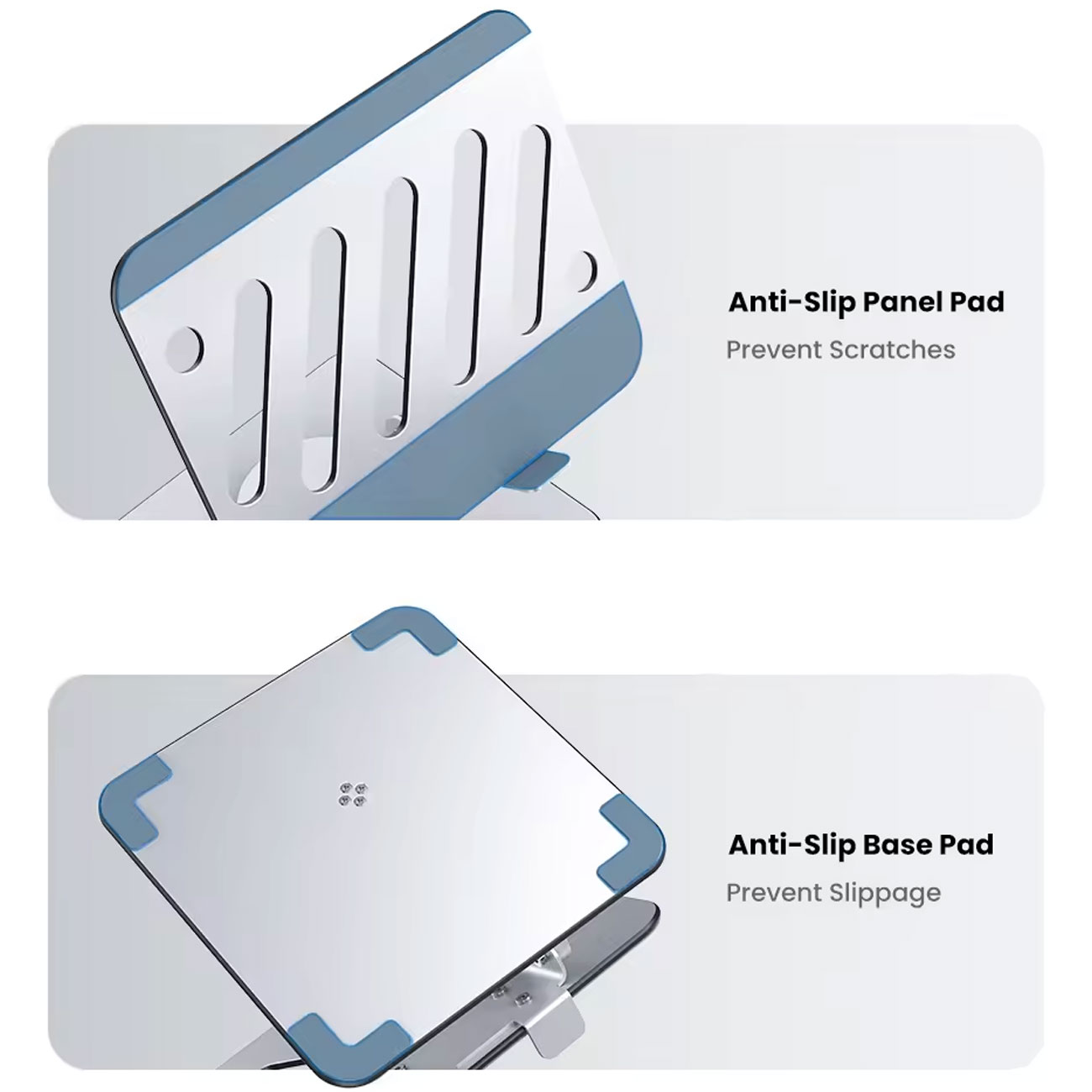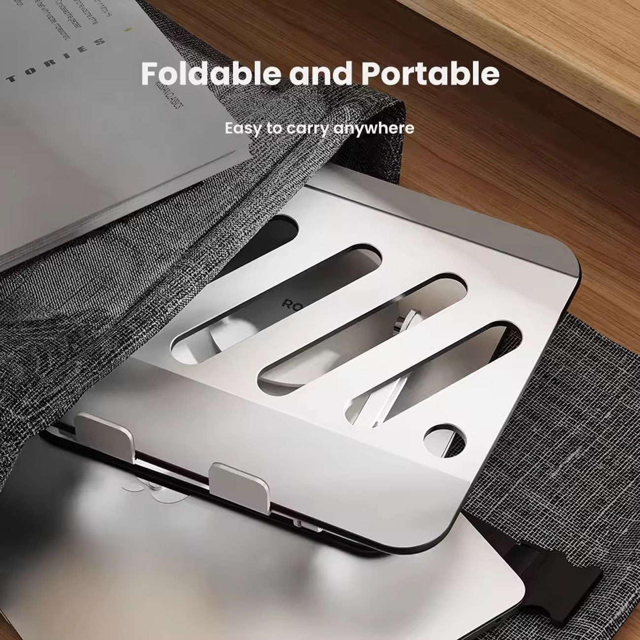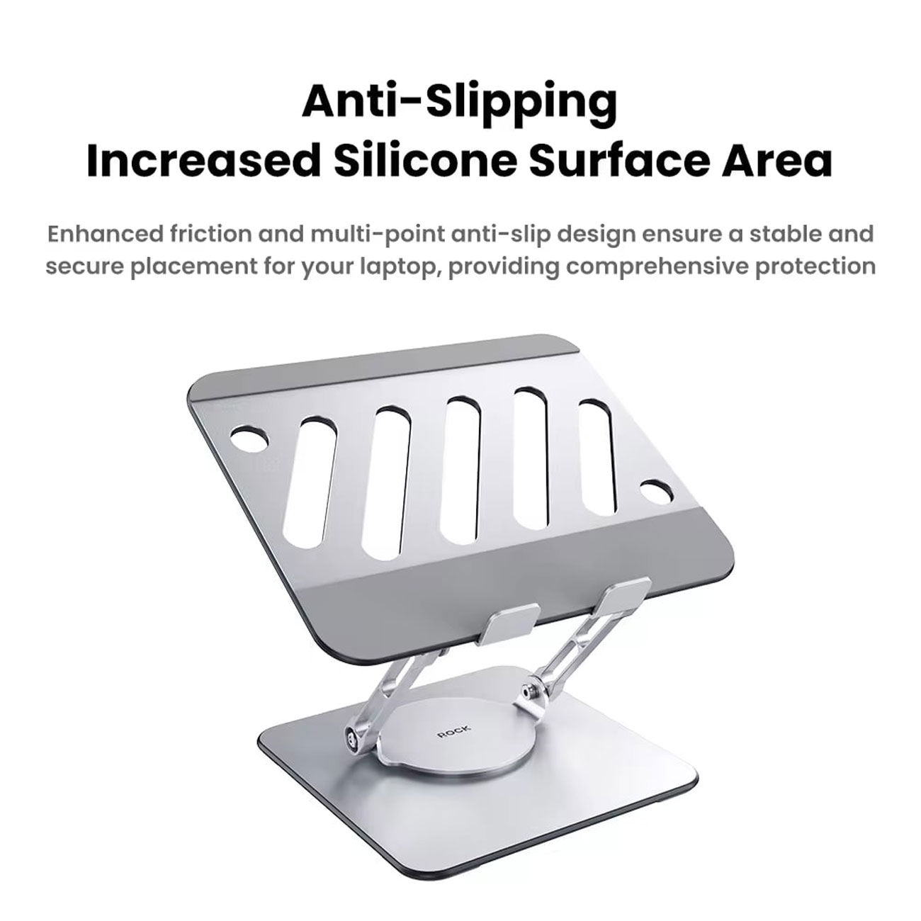 هنگام استفاده از پایه لپتاپ تاشو قابل حمل راک مدل RPH1006 Laptop Stand نگران داغ شدن لپ تاپ و تبلت خود نباشید. زیرا طراحی پشت باز آن، جریان هوا را افزایش و خنکسازی را اثربخشتر میکند؛ همچنین آلیاژ آلومینیوم از جذب گرما جلوگیری میکند و به بهبود انتقال حرارت کمک میکند.