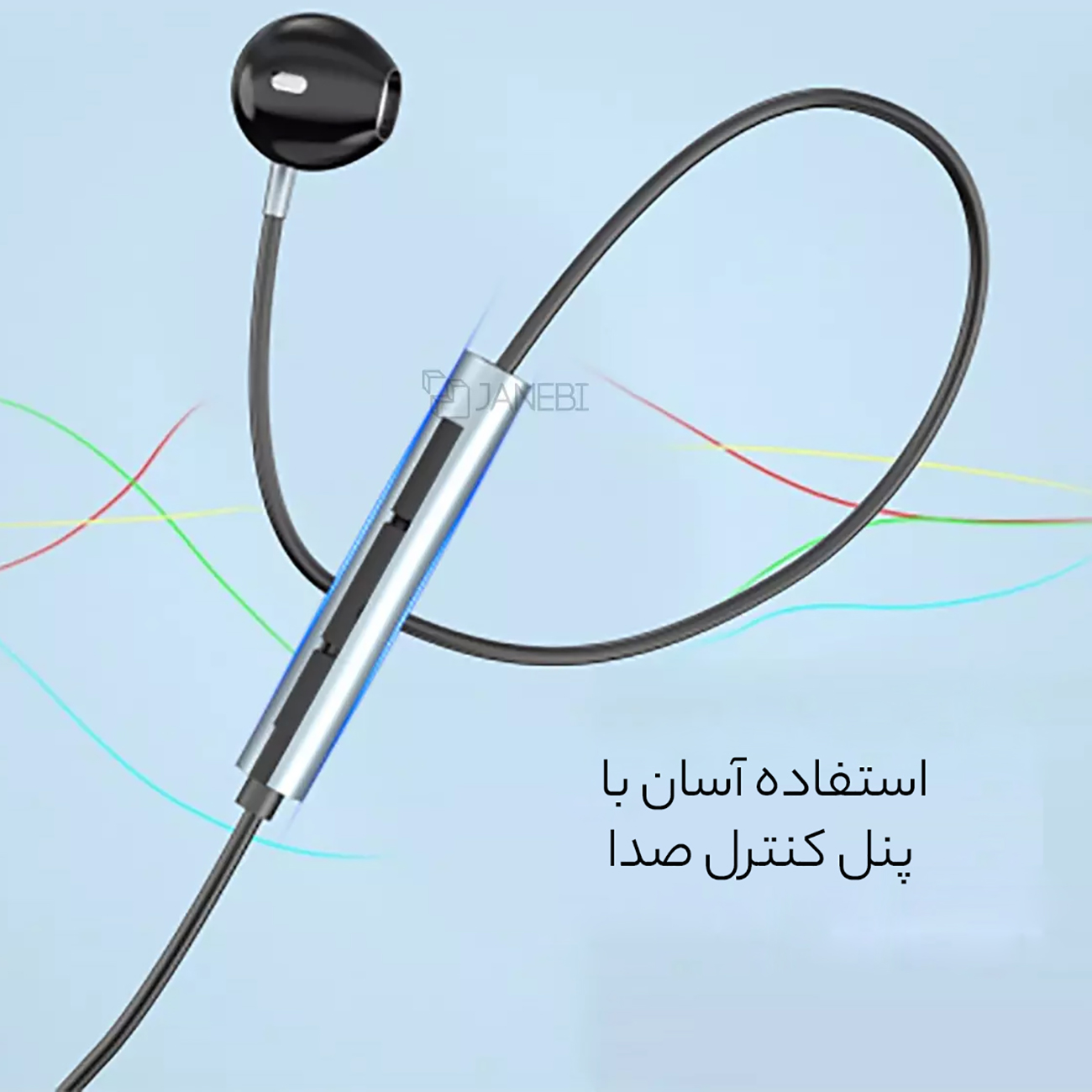 برای کنترل راحتتر تماس، موسیقی و حجم صدای هندزفری دو کلید روی بدنه کابل طراحی شده است. کلیدهای پنل برای تنظیم میزان حجم صدا و تغییر آهنگ، پاسخ یا رد تماس تماس، پخش یا توقف موسیقی کاربرد دارند.