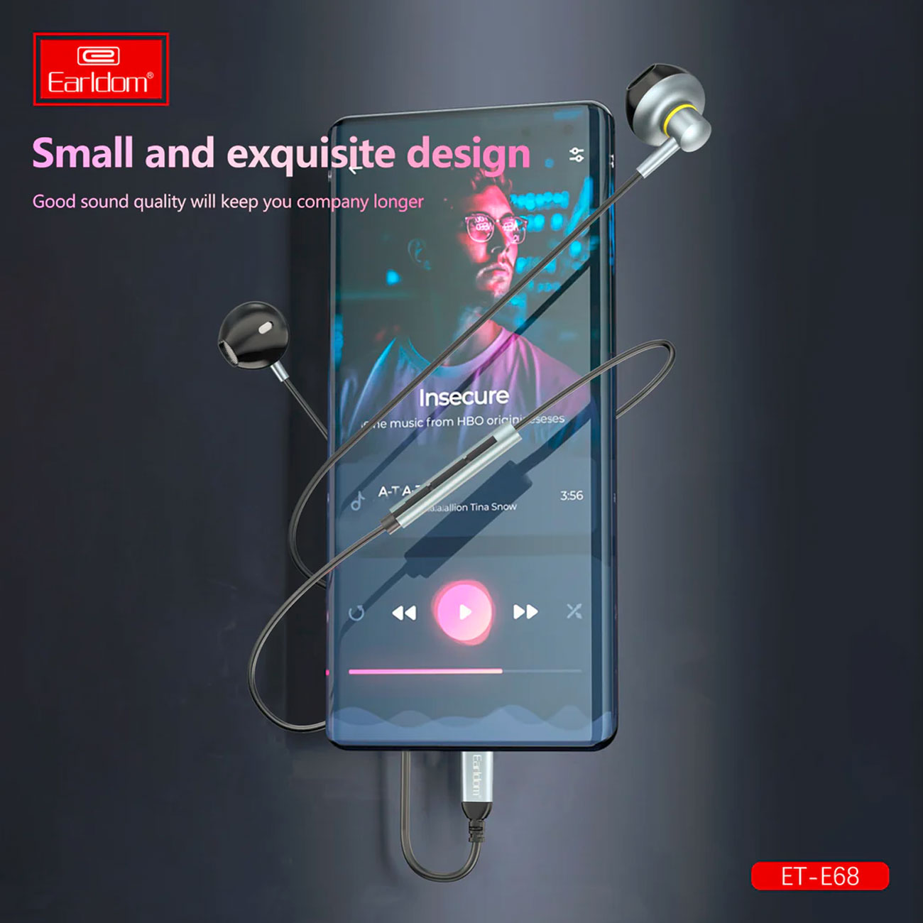 ایربادز سیمی Earldom Type-C E68 یک میکروفون داخلی HF نیز داشته که هنگام تماس و یا بازی میتوانید با استفاده از این میکروفون مکالمه برقرار کنید و باعث میشود صدا شفاف، واضح و بدون اُفت انتقال پیدا کند.