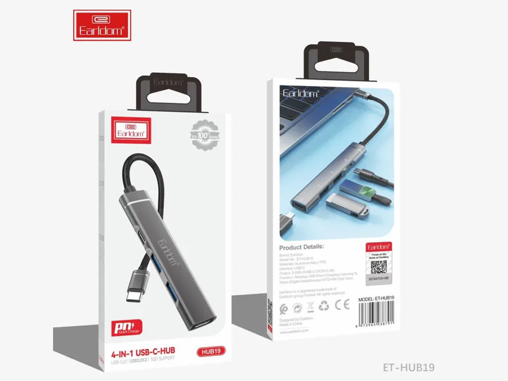 با خرید هاب تایپ سی 4 پورت ارلدام ET-HUB19 از فروشگاه اینترنتی جانبی خریدی آسان و مطمئن را تجربه خواهید کرد.