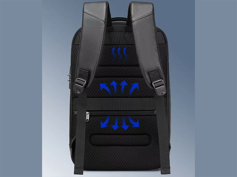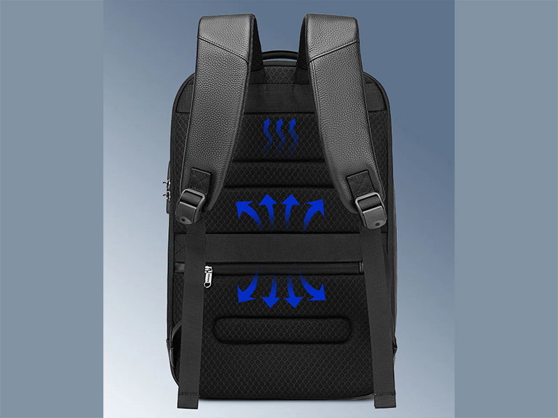 پشت کوله پشتی و بندهای شانهای پهن با اسفنجهای قابل تنفس پوشانده شده تا کوله پشتی برای استفاده نرم و راحت باشد و از تعریق جلوگیری نماید. سیستم تهویه مانع از تعریق شده و از گرفتگی عضلات کمر و شانه جلوگیری میکند. به علاوه از بو جلوگیری میکند و عرق را جذب مینماید.