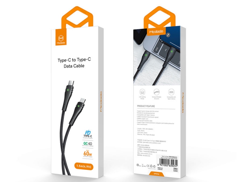 کابل شارژ Mcdodo دارای فناوری شارژ سریع PD و QC4.0 است که می تواند گوشی های سازگار با این فناوری را سریعتر از کابل های معمولی با توان 60W شارژ کند.